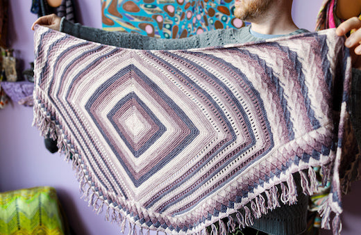 Twists & Turns was the 13th MKAL shawl filled with a collage of twisting textures and three colors of yarn. This large shawl featured a fun braided loop technique in the first chevron section followed by short rows...