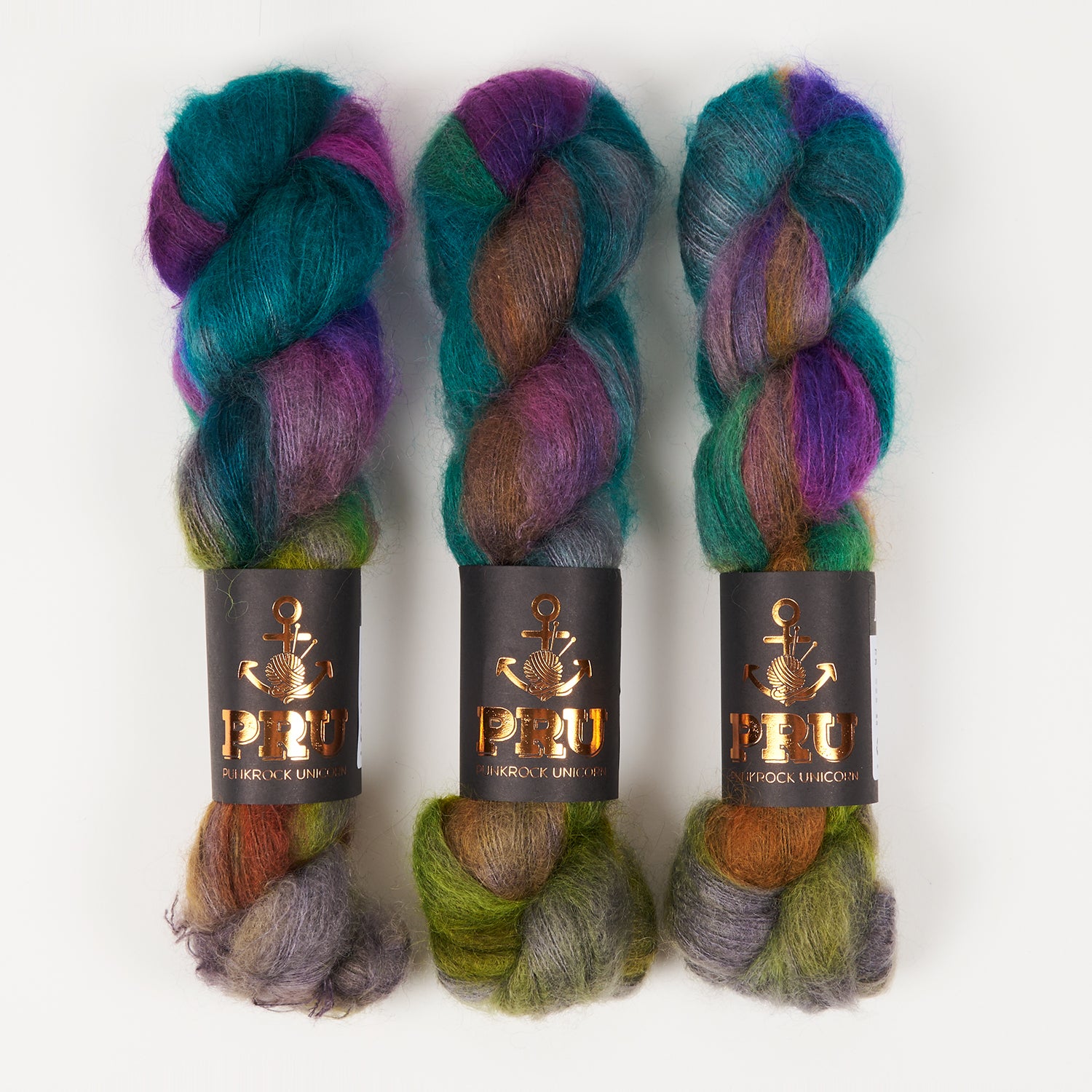 MOE - SPILLED OIL allall-yarn-exc-west-woolblue-yarnhand-dyed-yarnlace-weight-yarnmoemohairpunk-rock-unicornsilkstephenandpenelopesweater-quantity-collectionyarn