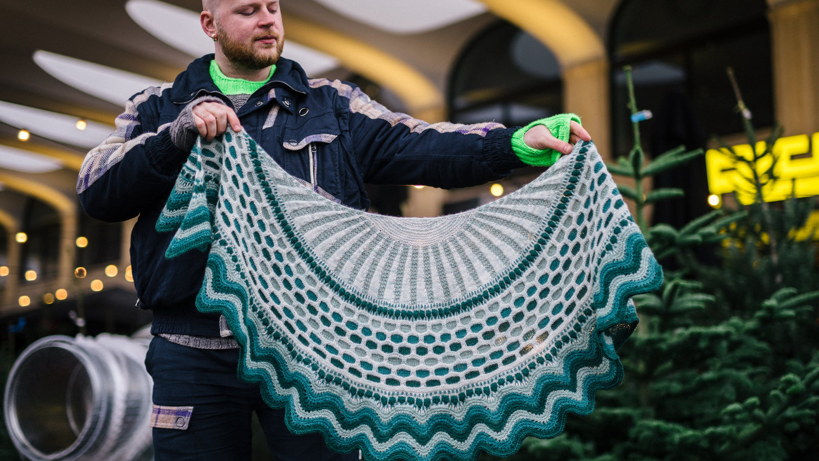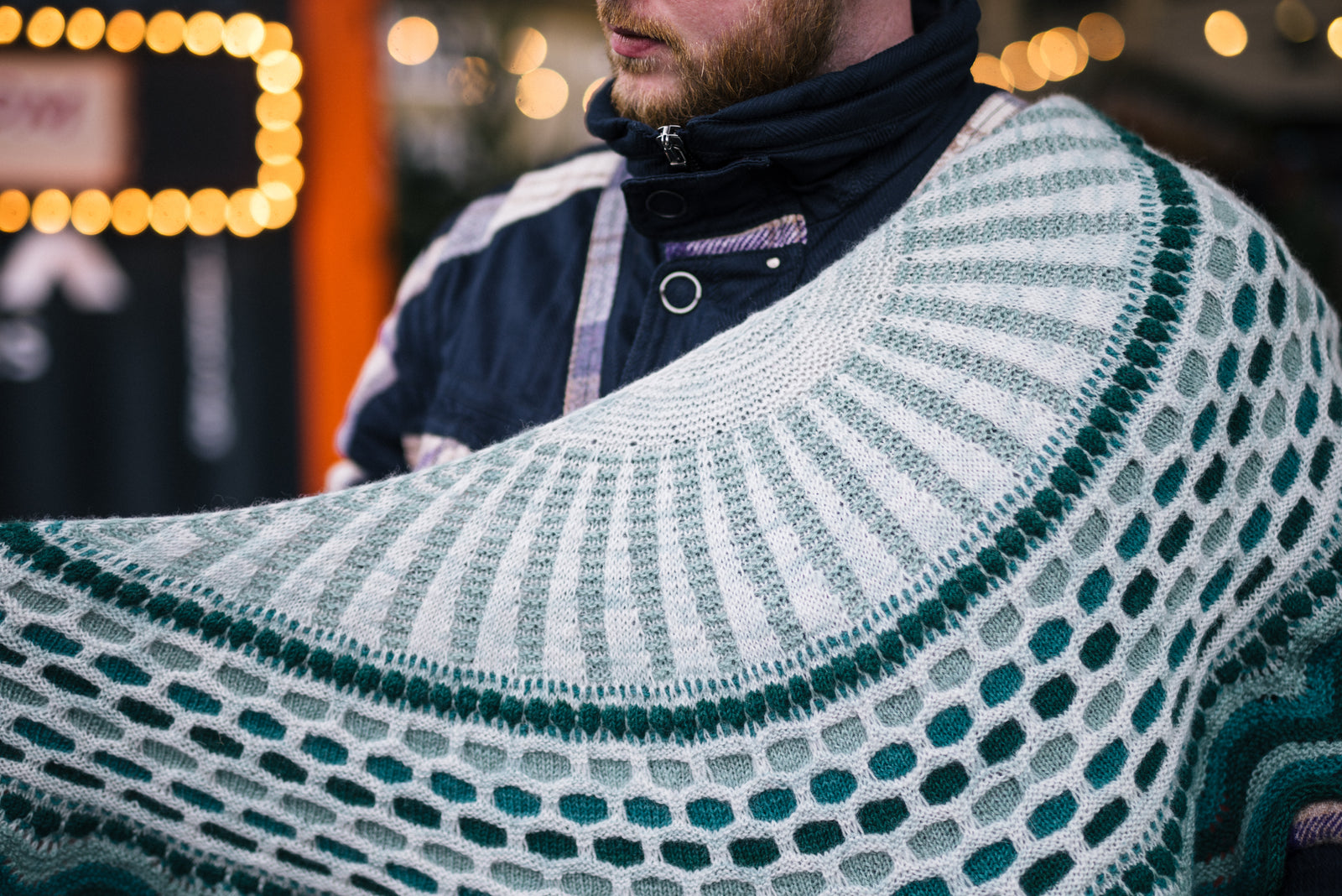 This semi-circular shawl features four skeins of yarn, one skein of the main colour with three accent colours. The top-down construction begins with garter stitch and slip stitch rays. You only work with one colour at a time for an enjoyable and surprisingly simple process. Little slip stitch dots and bubbles frame the larger sections and a colourful honeycomb section fills the middle of the shawl. Finish the edge with a wavy border using all contrast colours and enjoy your new Westknits shawl.