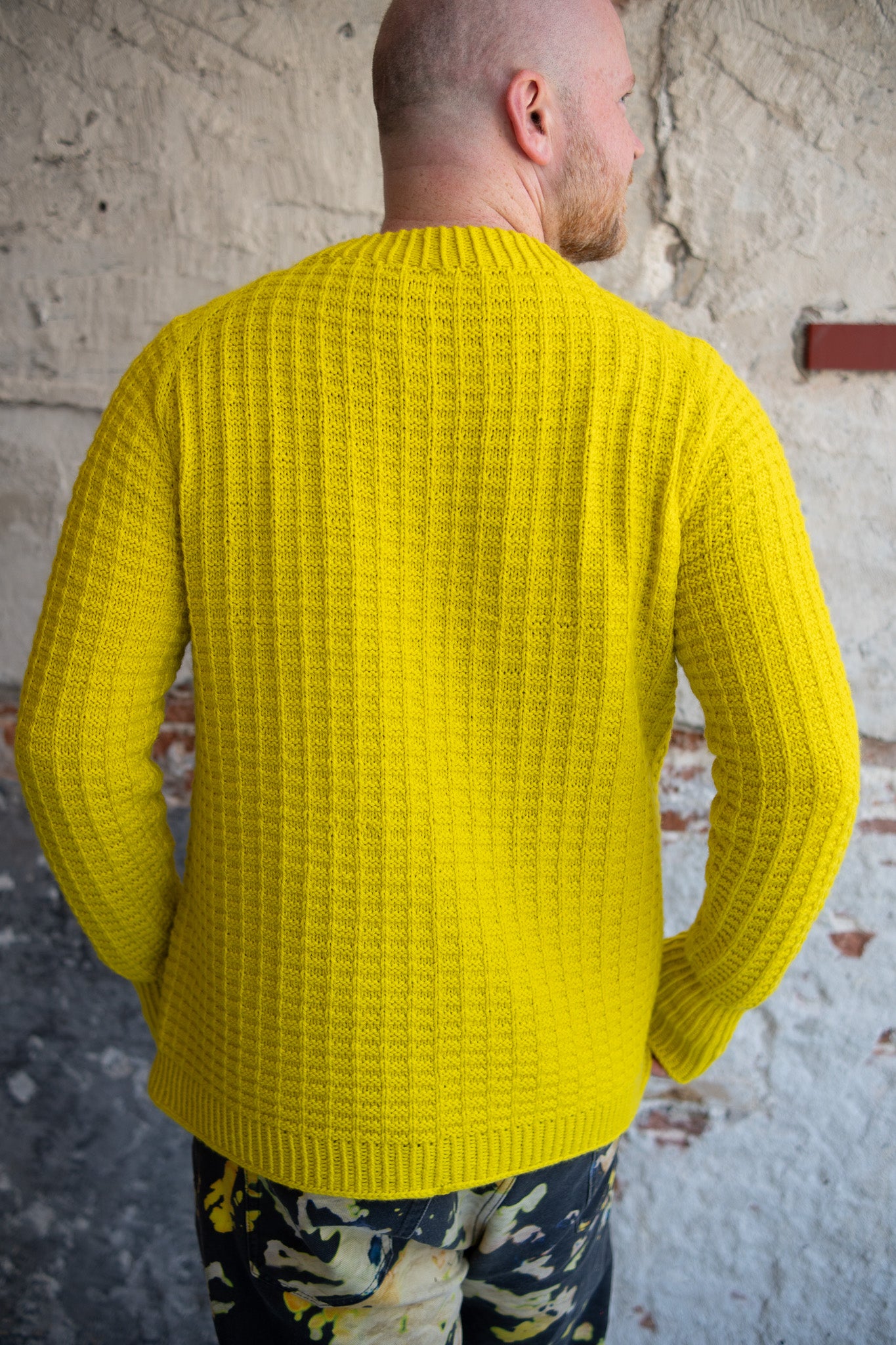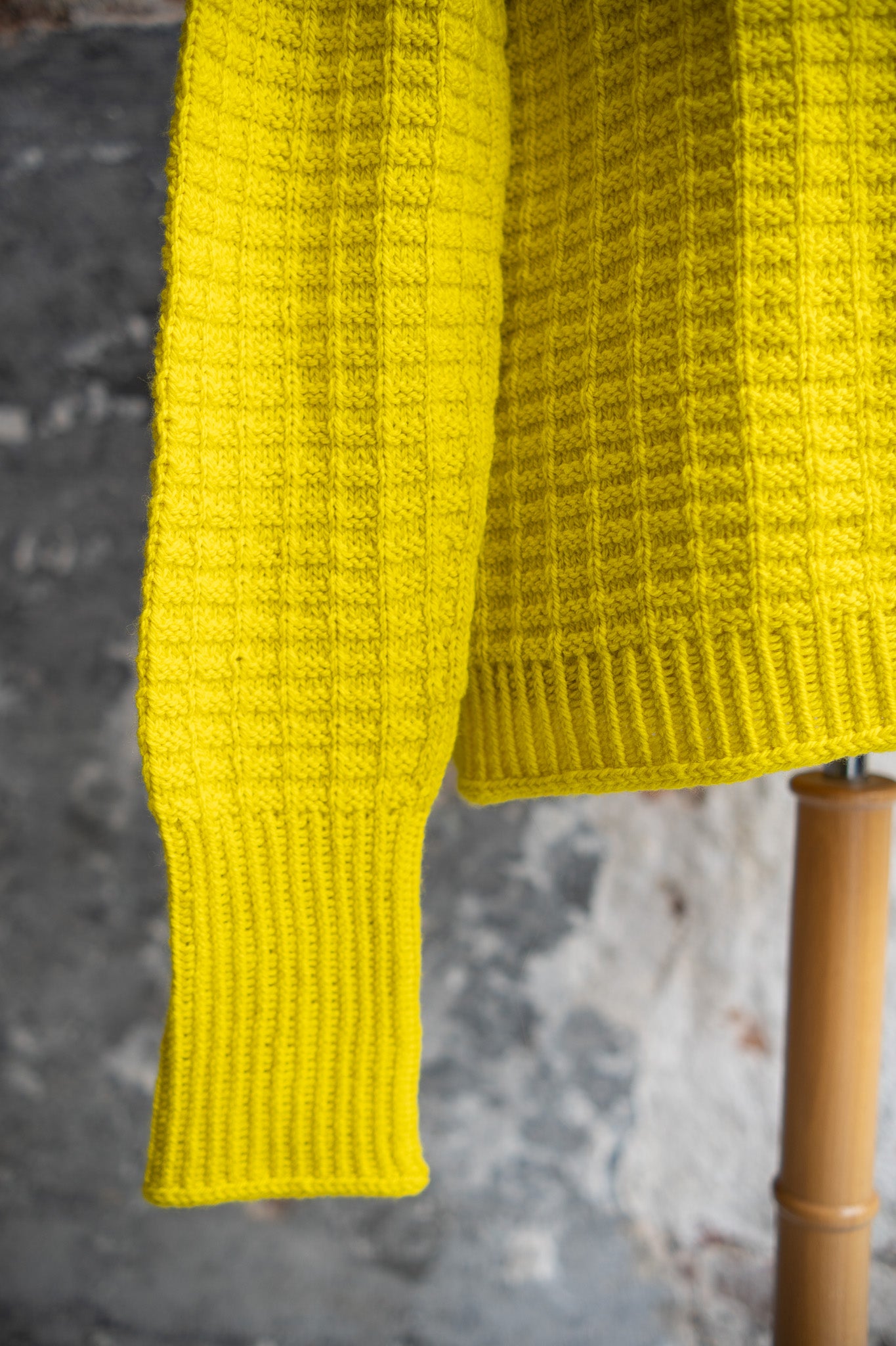 This beautifully textured sweater is kit top-down with one colour of West Wool's Tandem. The folded hem neckline creates a structured collar in twisted ribbing followed by the waffle stitch pattern. Easy knits and purls flow throughout the raglan yoke and into the body and sleeves of the sweater. You can easily customise the yoke depth and length of the body and sleeves by simply knitting more or fewer rounds. The bottom of the body and cuffs feature twisted ribbing to complete this cosy and comfortable sweater.