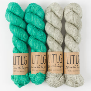 This beautiful Life in The Long Grass kit contains four skeins of fingering weight yarn. If you're looking for project inspiration, it will work up perfectly for any of these Westknits shawls.