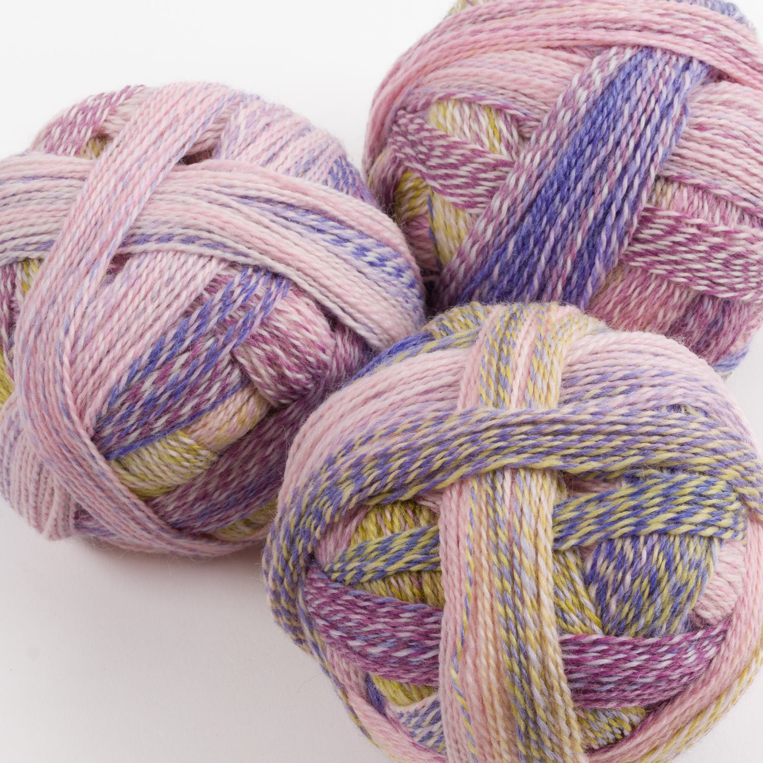 Self-striping Zauberball Crazy by Schoppel Wolle is a versatile fingering weight yarn that produces unique, non repeating colour blocks, perfect for fun accessories and shawls.