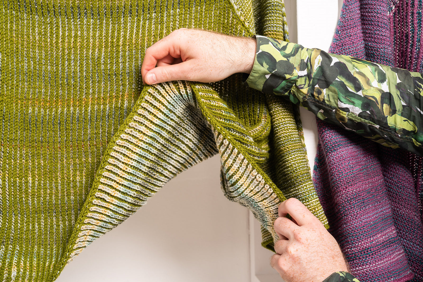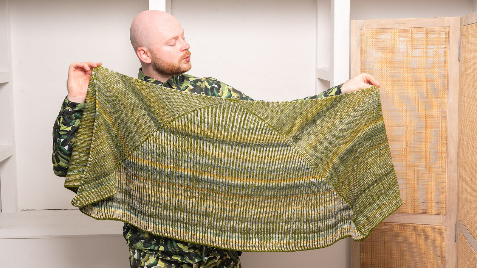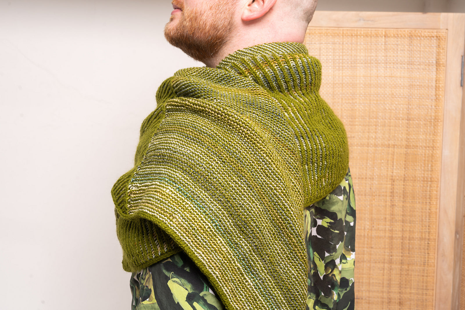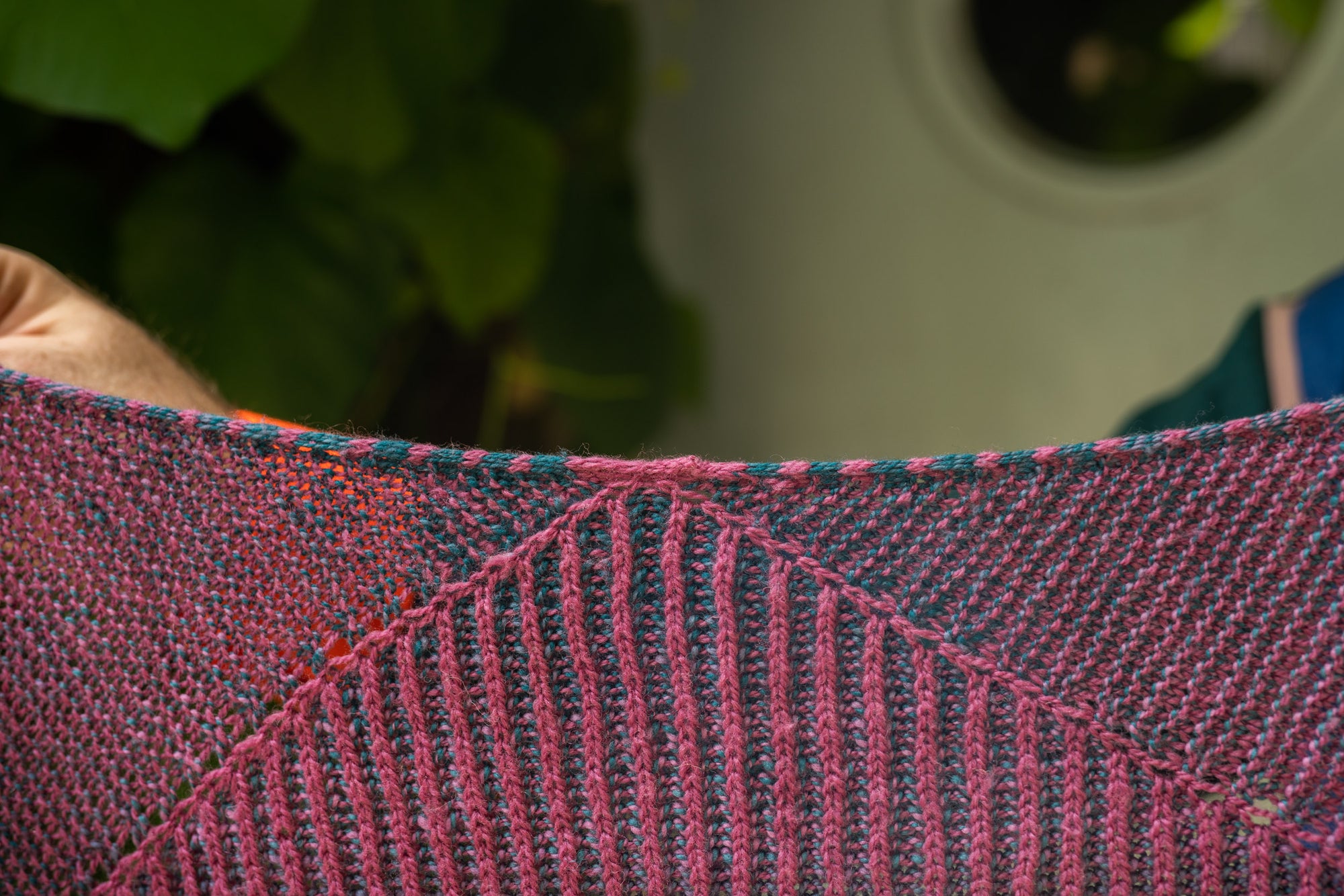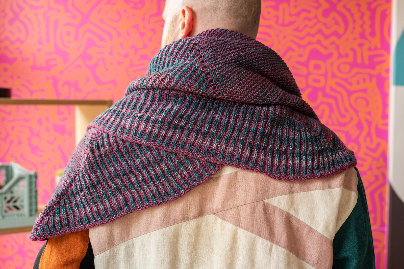 This top-down shawl increases in the centre which forms the wide two-colour brioche section with simple garter stitch framing the centre ribbing. The garter stitch gives a relaxing break from the brioche rhythm as you knit this seamless pattern. The simple stitch combination produces a completely reversible shawl. The top-down construction and short pattern repeat, makes this pattern easy to customise. Simply bind off early for a smaller shawl or keep knitting until you achieve the shlanket of your dreams!