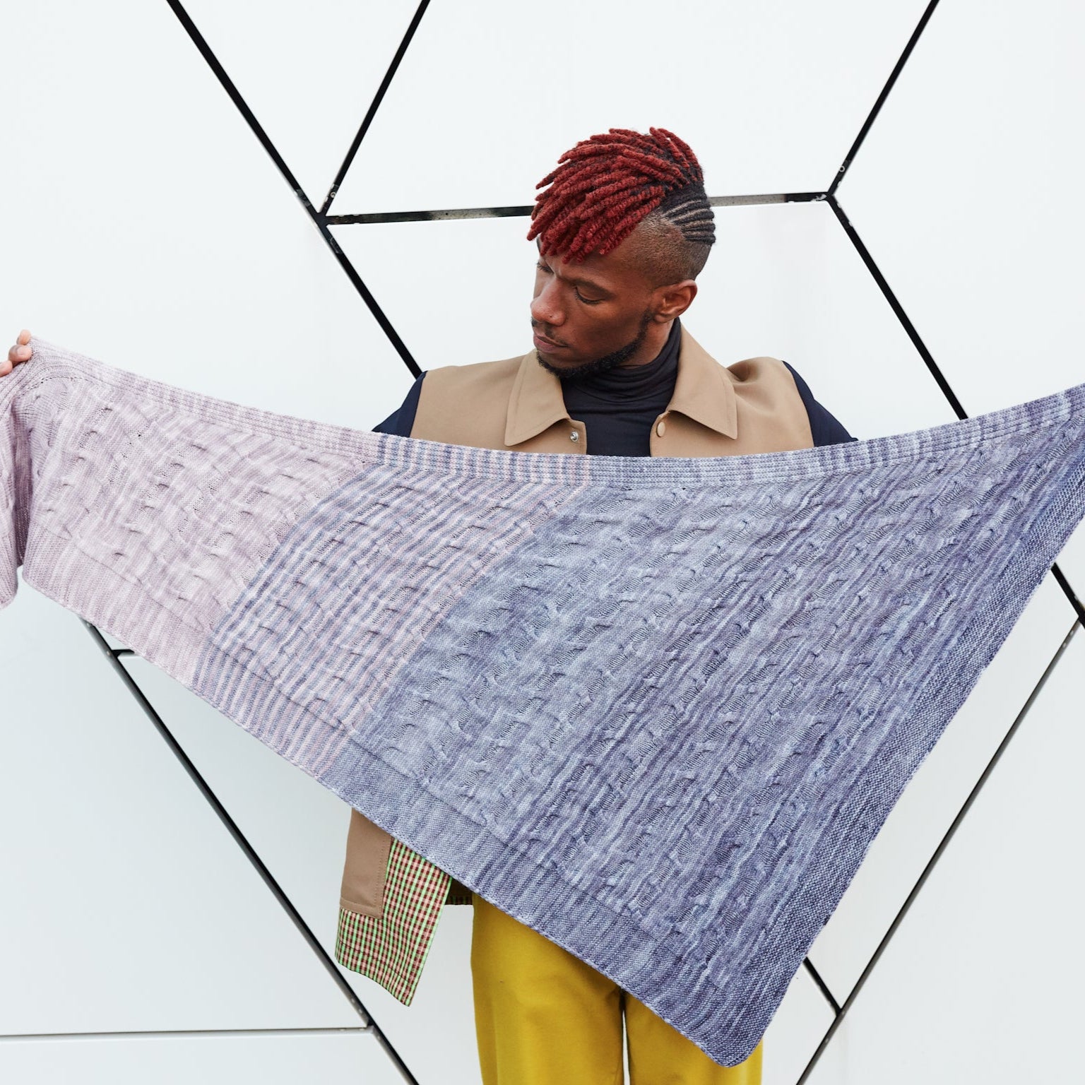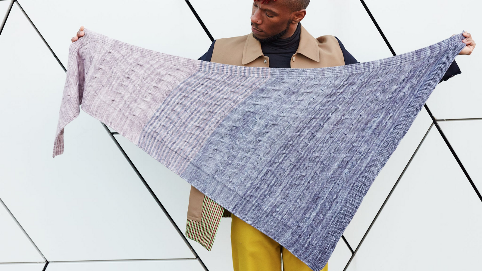 Yarn Requirements: 300g of fingering weight yarn in three fading coloursThis simple textured shawl features meandering cables framed by simple ribbing and garter stitch. Three skeins of fingering weight yarn yield a lovely triangular shape that is knit sideways. You can choose three tonal colourways that fade together or pick one colour and enjoy this easy-to-knit shawl. The size of this shawl is customisable. You can bind off early by working fewer pattern repeats or work a smaller border for a slightly smaller shawl to accommodate various yardage amounts.