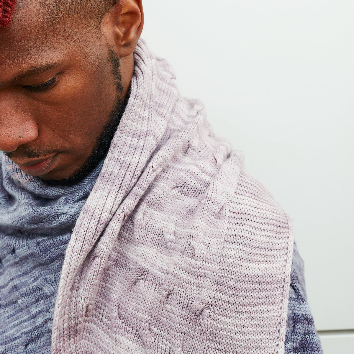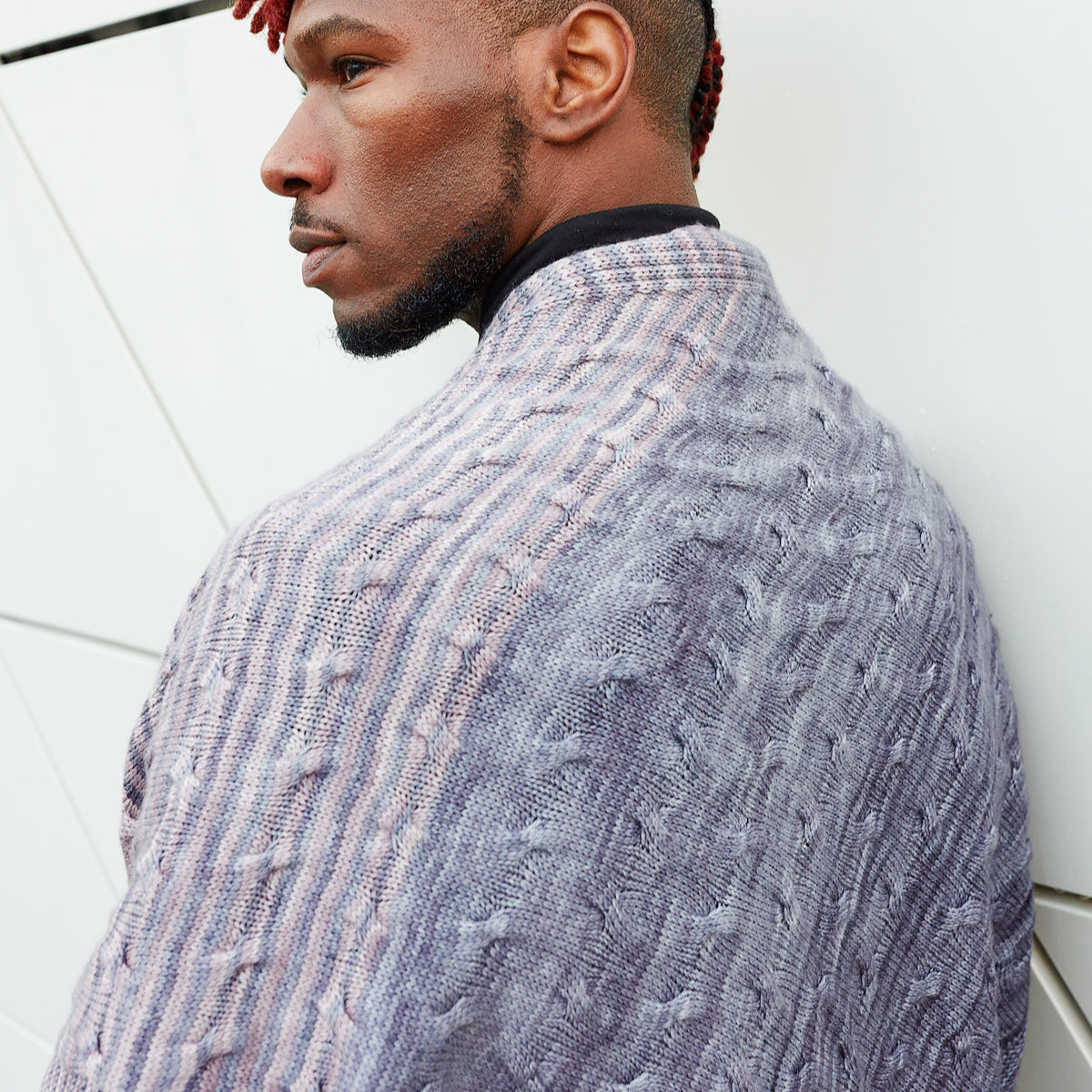 This simple textured shawl features meandering cables framed by simple ribbing and garter stitch. Three skeins of fingering weight yarn yield a lovely triangular shape that is knit sideways. You can choose three tonal colourways that fade together or pick one colour and enjoy this easy-to-knit shawl. The size of this shawl is customisable. You can bind off early by working fewer pattern repeats or work a smaller border for a slightly smaller shawl to accommodate various yardage amounts.