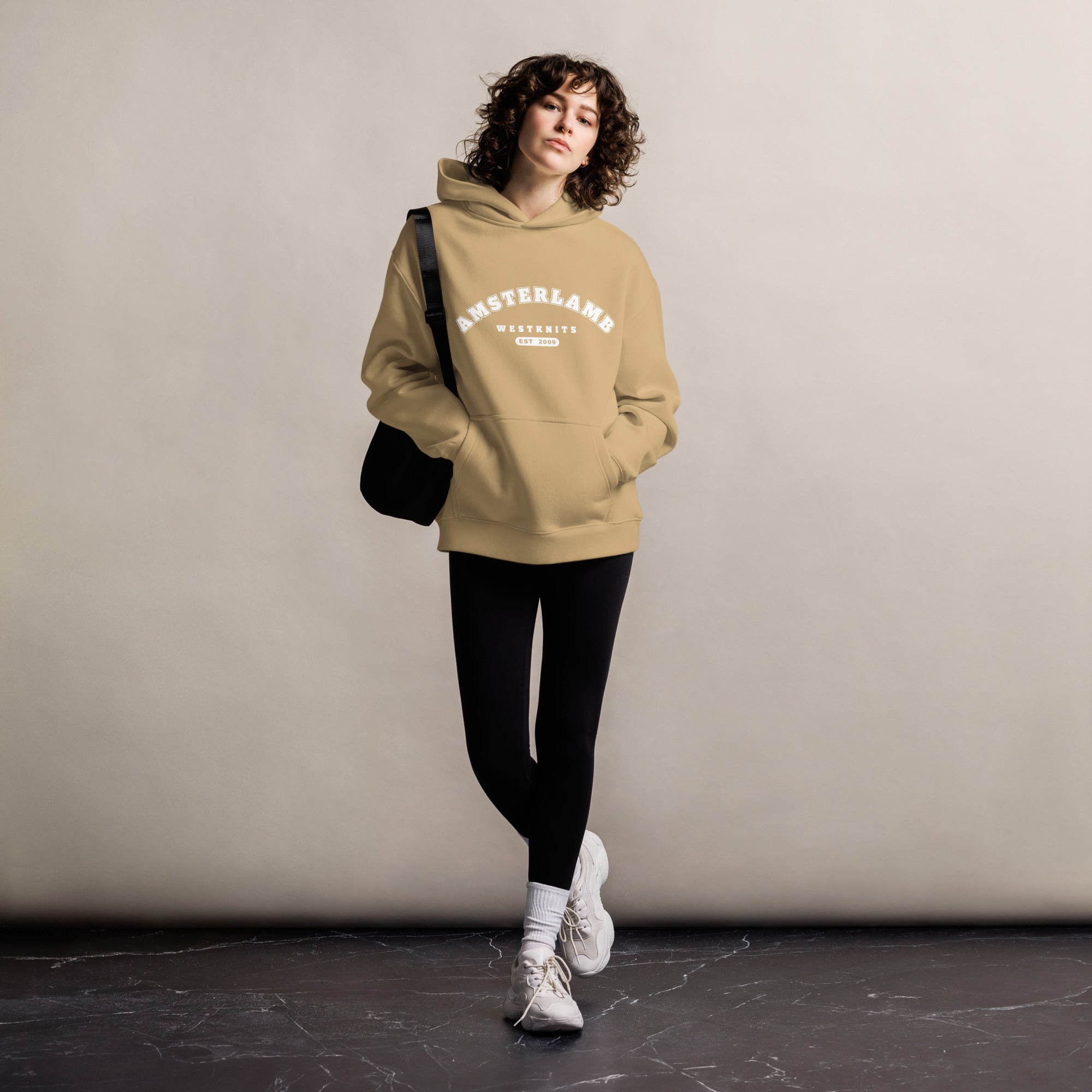 The Amsterlamb University Oversized Hoodie is an instant Westknits classic! Known for his punny slogans, Westknits shows you how to sneak woolly humour into every day life with this classy Uni-style garment.