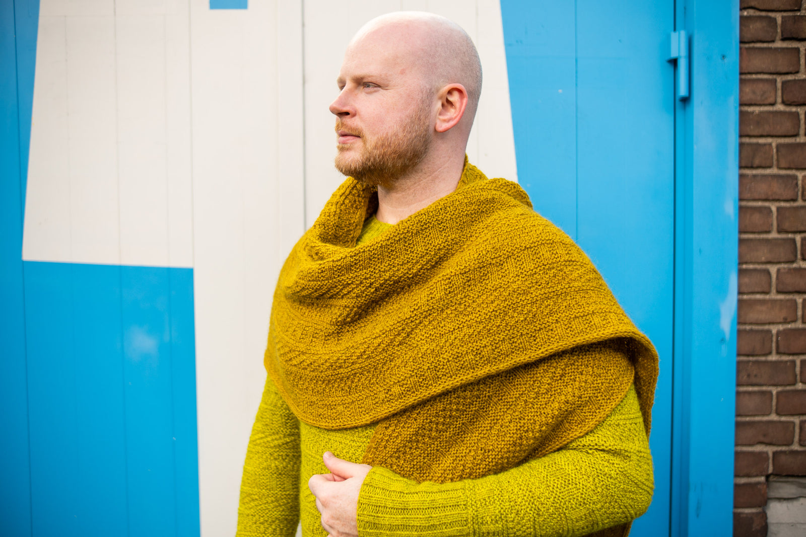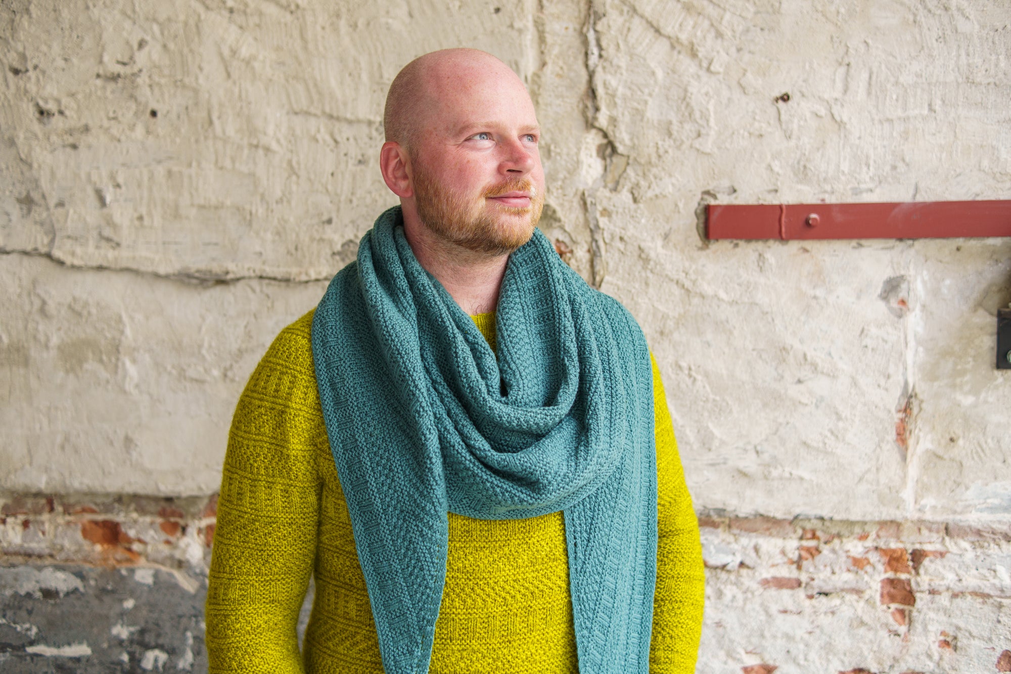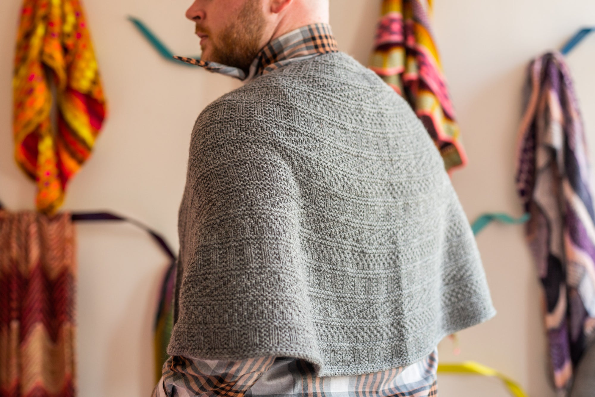 This top-down shawl features several easy knit purl textures for an entertaining and soothing project. Four skeins of DK weight wool like West Wool Tandem create this large cosy shawl. Garter stitch frames the wingspan edges and a crisp I-cord bind off finishes this top-down shawl for a crisp clean look.