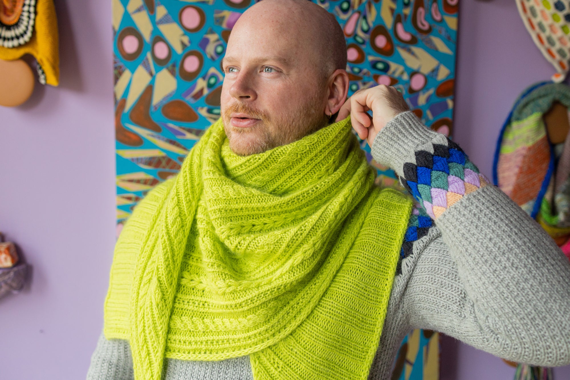 Yarn requirements: 4 skeins of DK weight yarn paired with 4 balls of fluffy mohair lace in the same colour