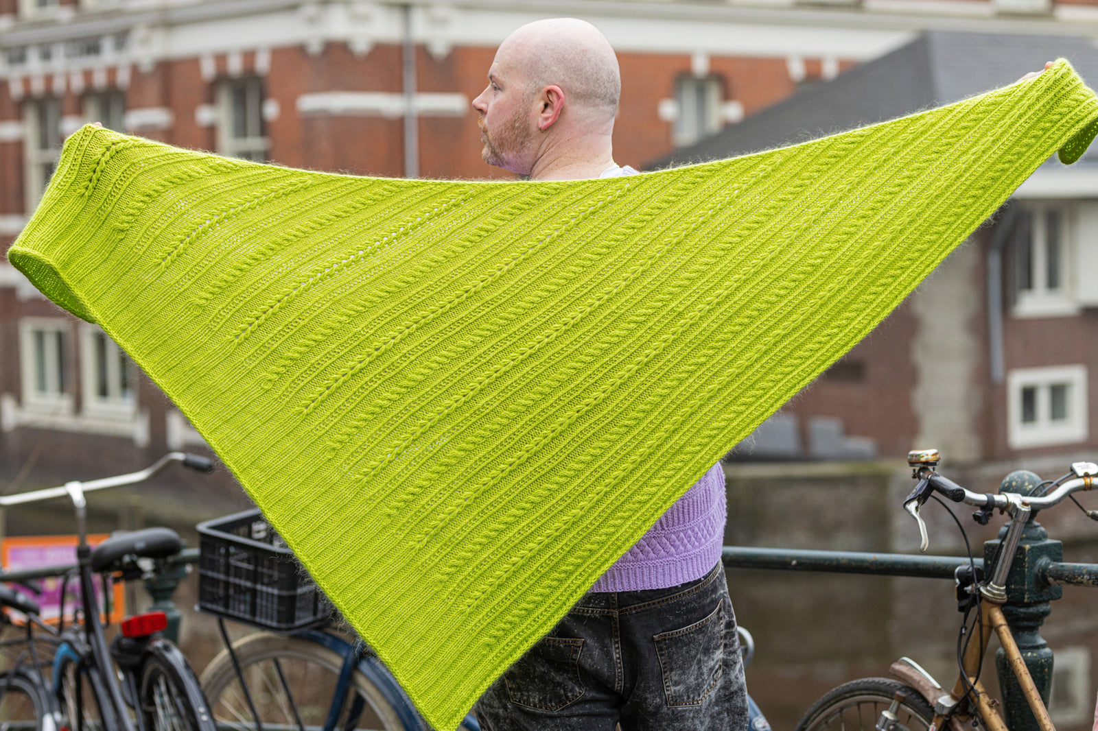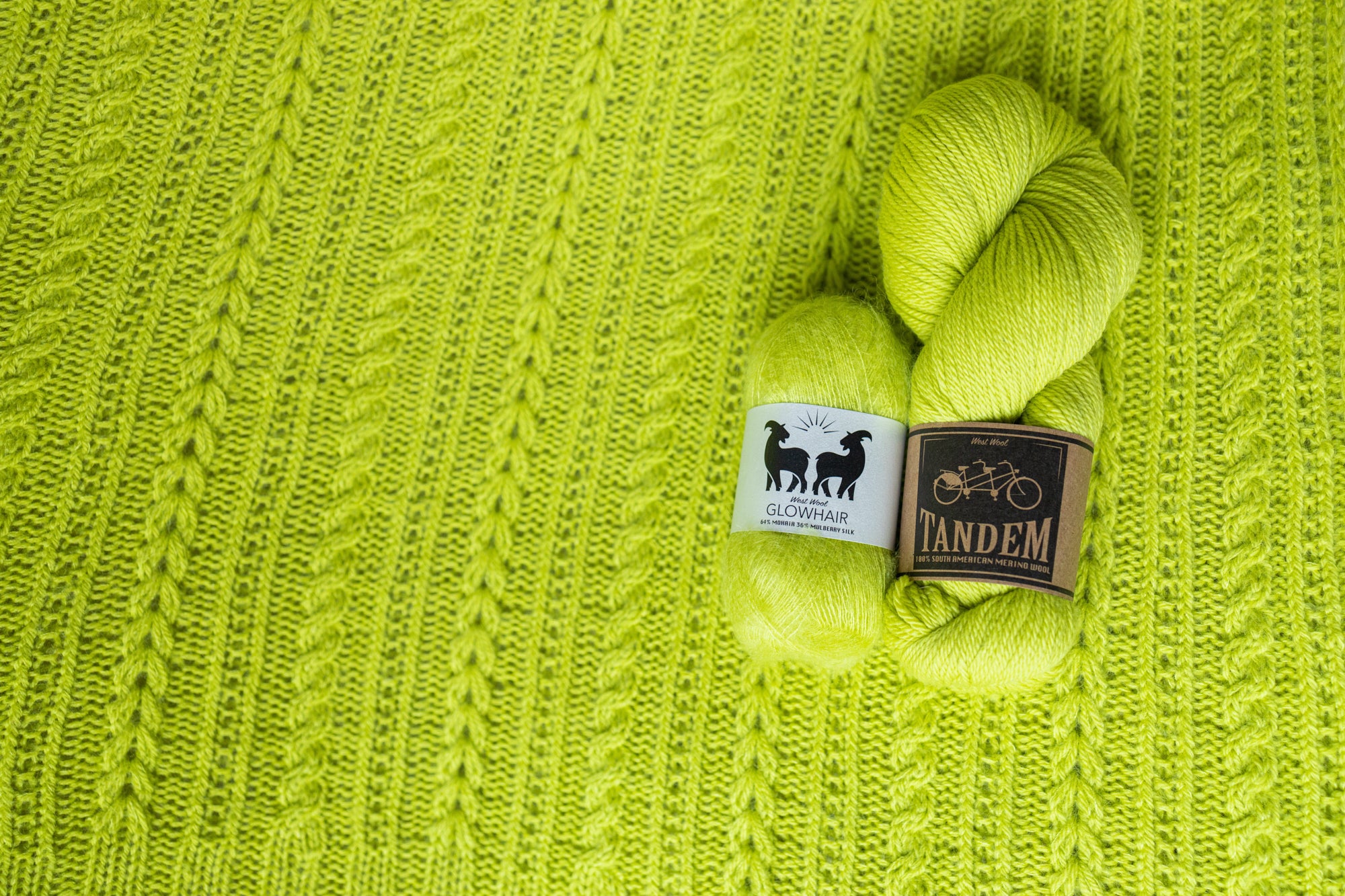 The marvellous Fir Rib Shawl is knitted with one strand of DK weight wool held together with one strand of lace weight mohair silk. This sideways triangle begins at the small corner with an I-cord cast on. The I-cord continues to frame ribbed columns with dip stitches, twisted stitches, and cables. You can easily customise the size by simply binding off early for a smaller shawl or knit more pattern repeats if you have extra yarn to create a larger size. Choose your favourite West Wool kit featuring four skeins of Tandem paired with four balls of Glowhair in the same colour, and enjoy knitting this stunning shawl!