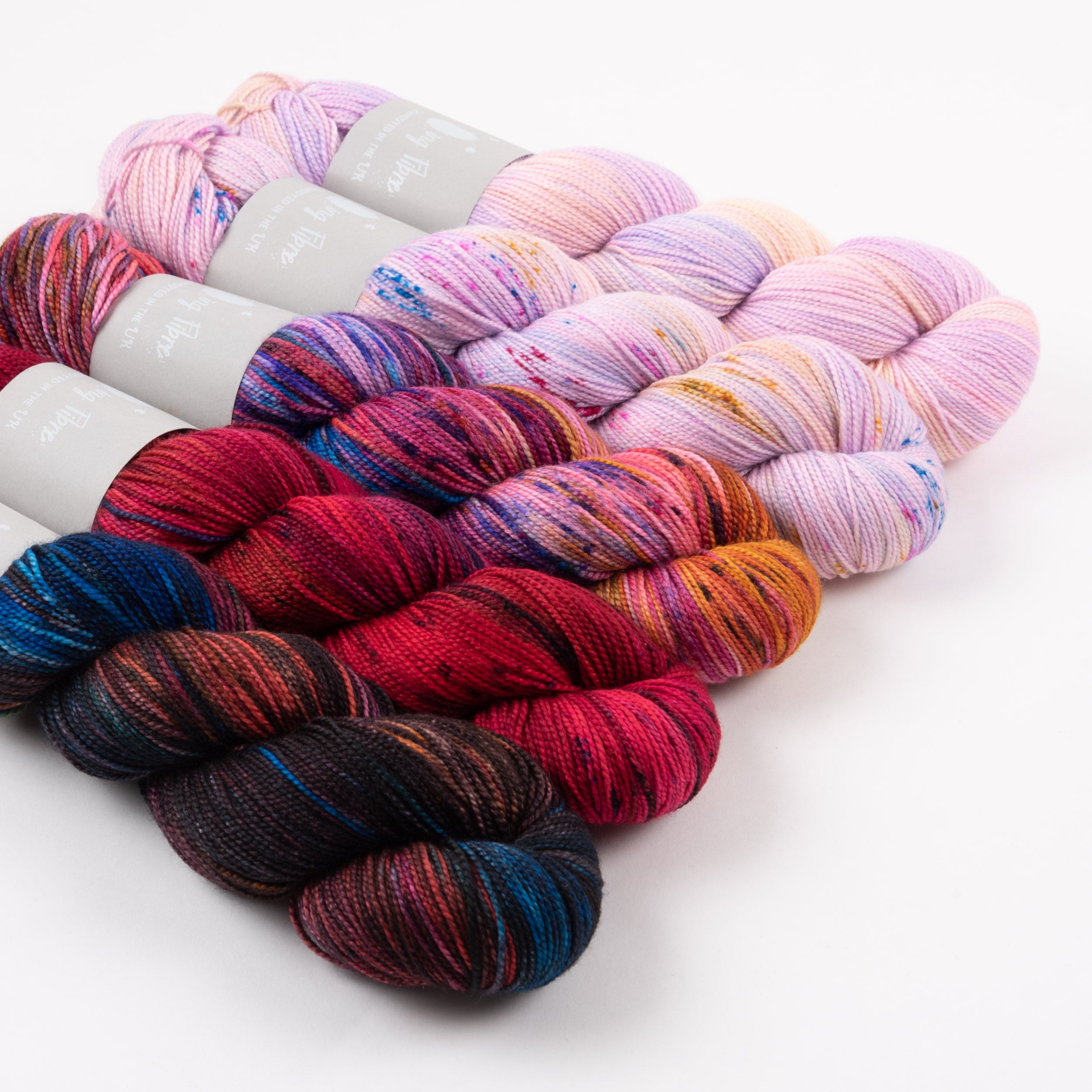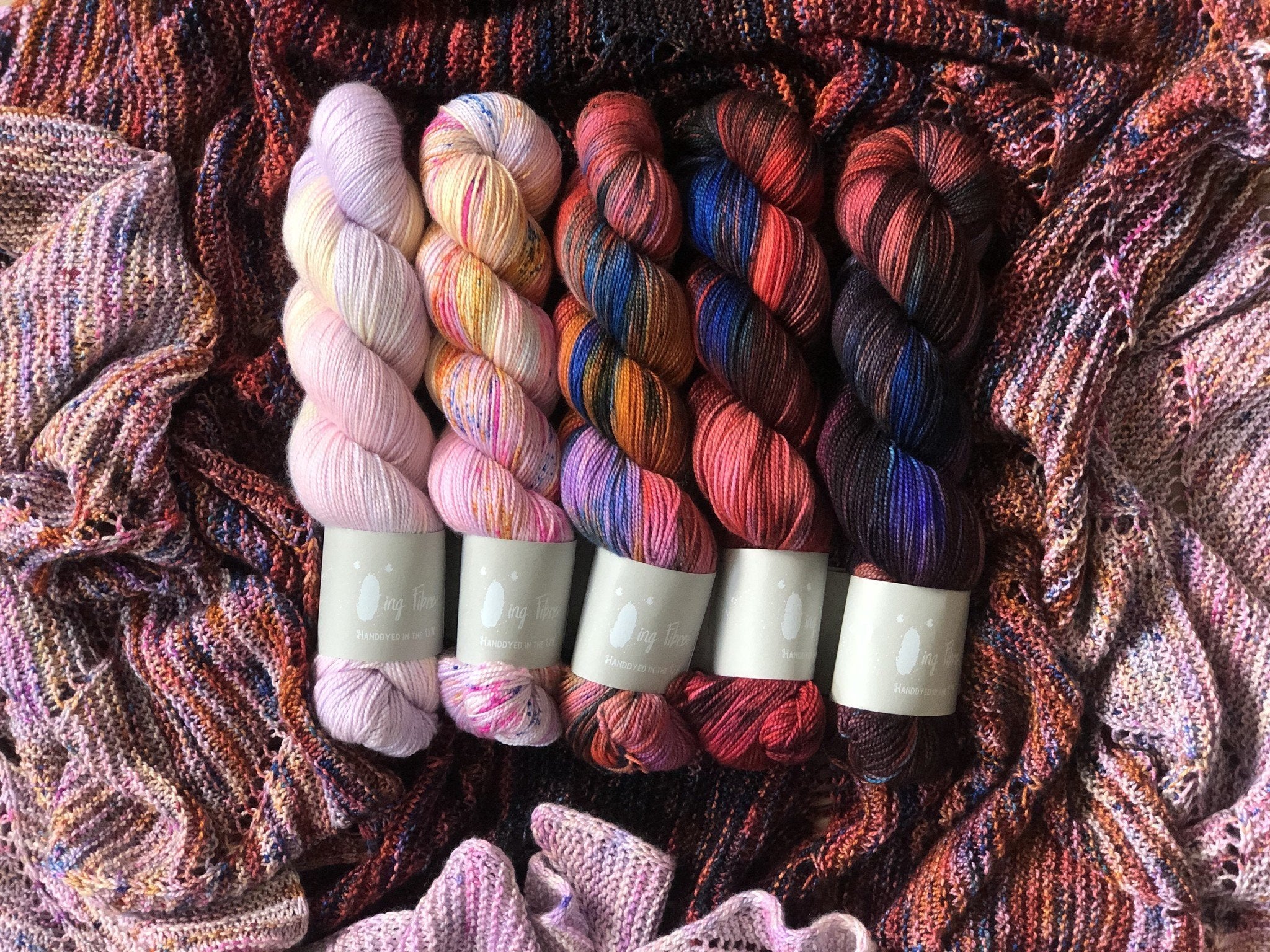 Yarn Requirements: 500g of fingering weight yarn in five coloursThis kit includes a Westknits pattern download code that can be redeemed for this or another Westknits pattern of your choice. You will receive your code once your order is shipped and it can then be redeemed on Ravelry!