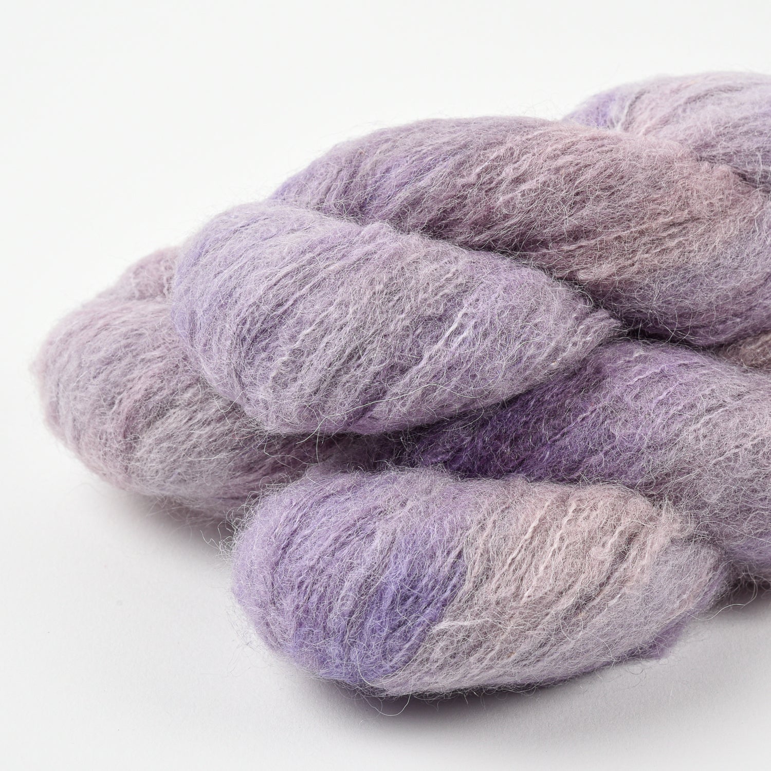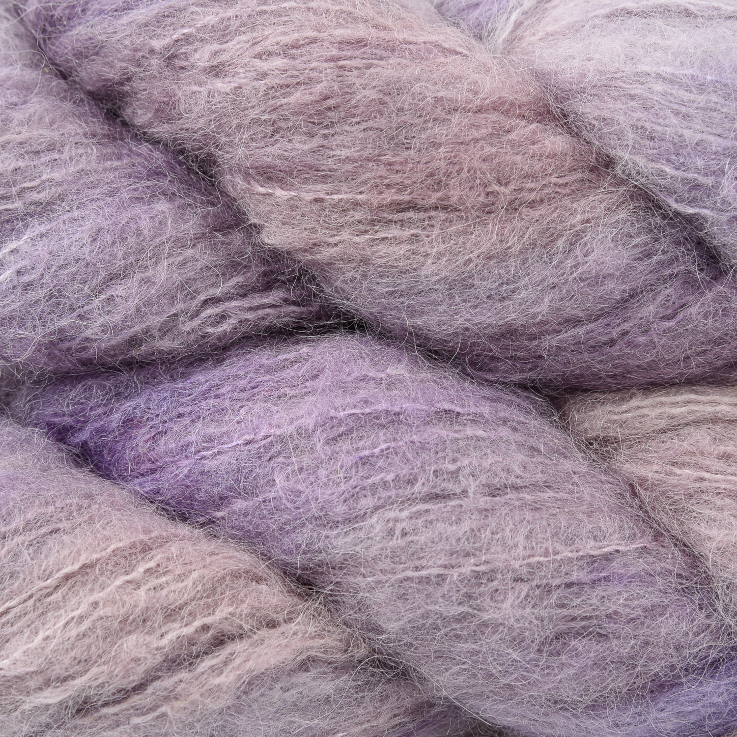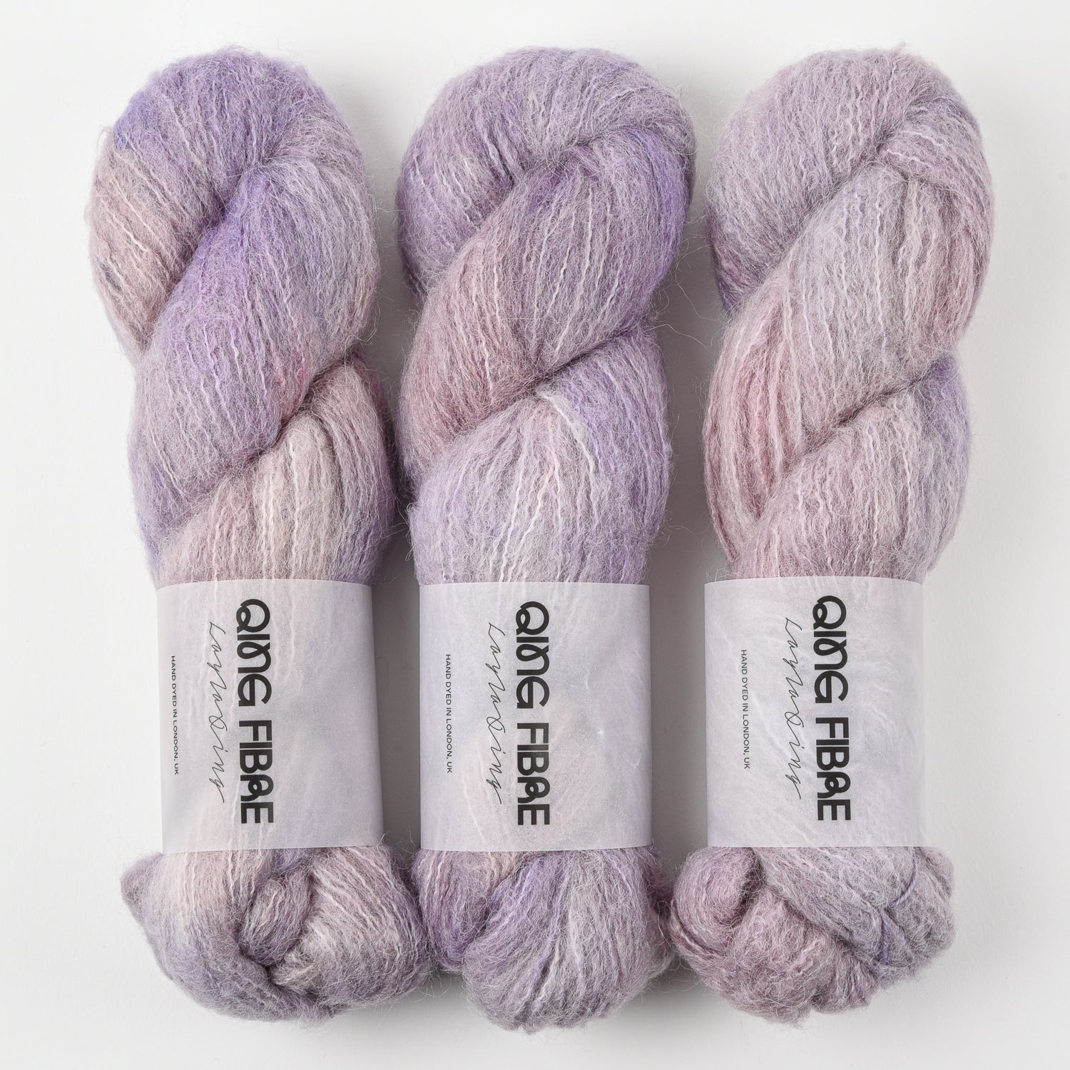 Qing Fibre’s Melted Baby Suri is a fluffy blend of Baby Suri Alpaca, Merino, and Silk. Perfect for cloudy soft garments and accessories.