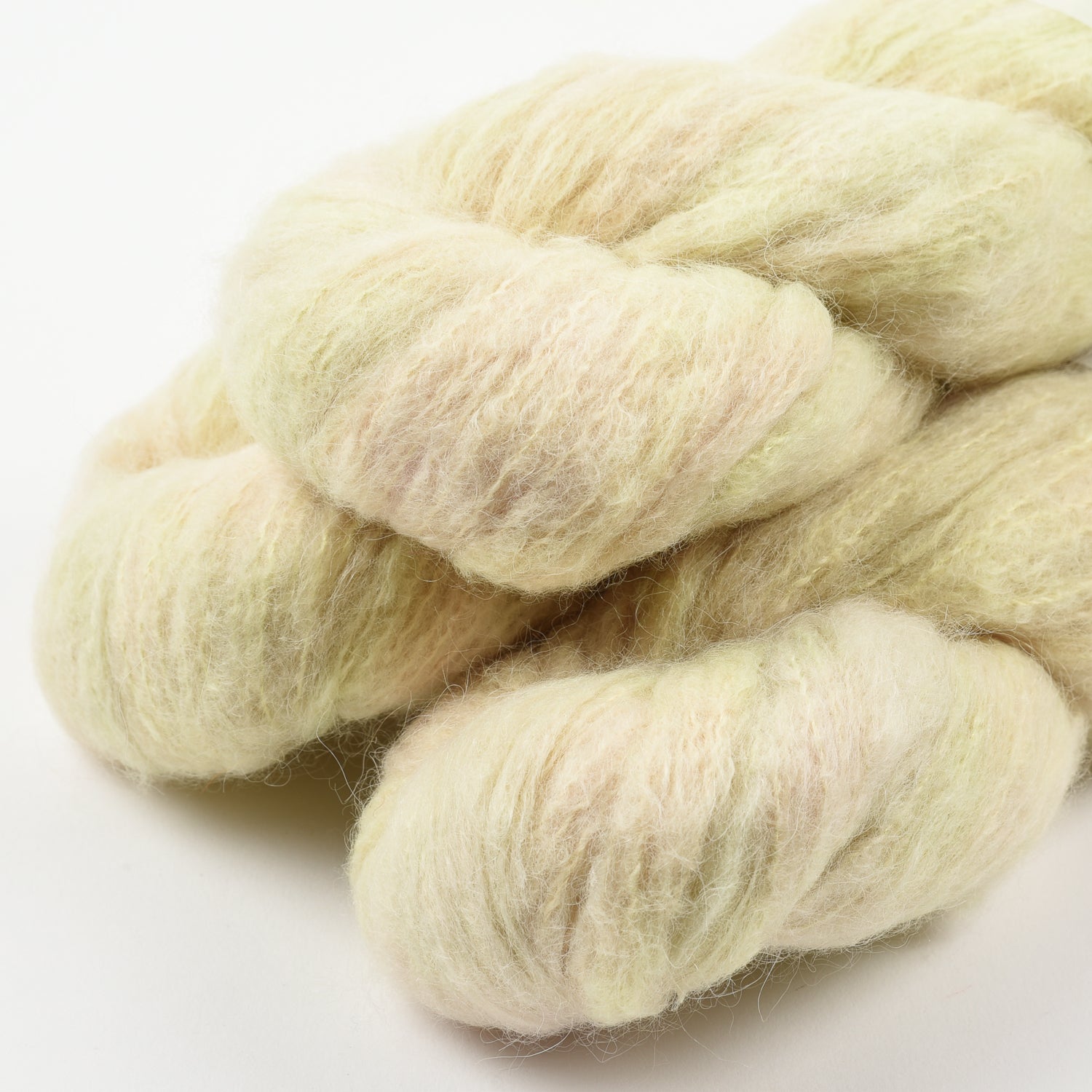 Qing Fibre’s Melted Baby Suri is a fluffy blend of Baby Suri Alpaca, Merino, and Silk. Perfect for cloudy soft garments and accessories.