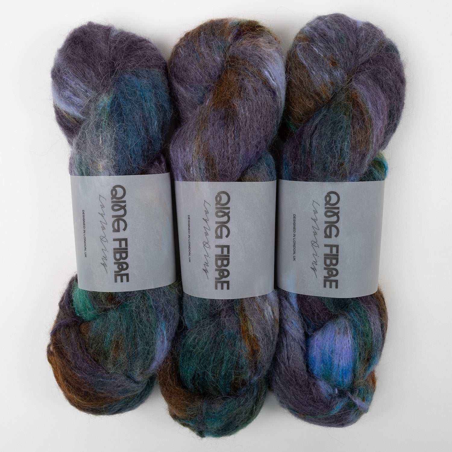 Qing Fibre’s Melted Baby Suri is a fluffy blend of Baby Suri Alpaca, Merino, and Silk. Perfect for cloudy soft garments and accessories.