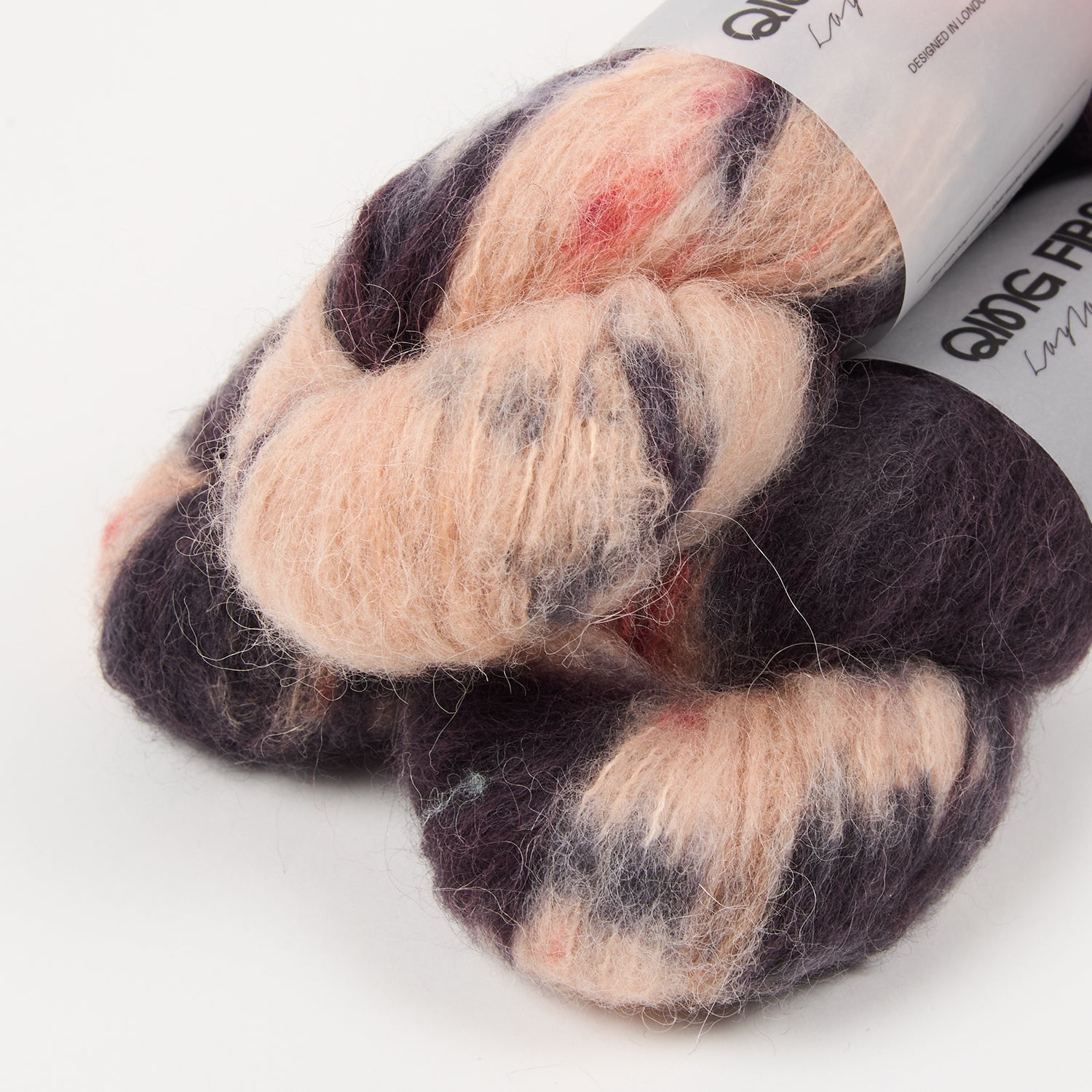 Qing Fibre’s Melted Baby Suri is a fluffy blend of Baby Suri Alpaca, Merino, and Silk. Perfect for cloudy soft garments and accessories.