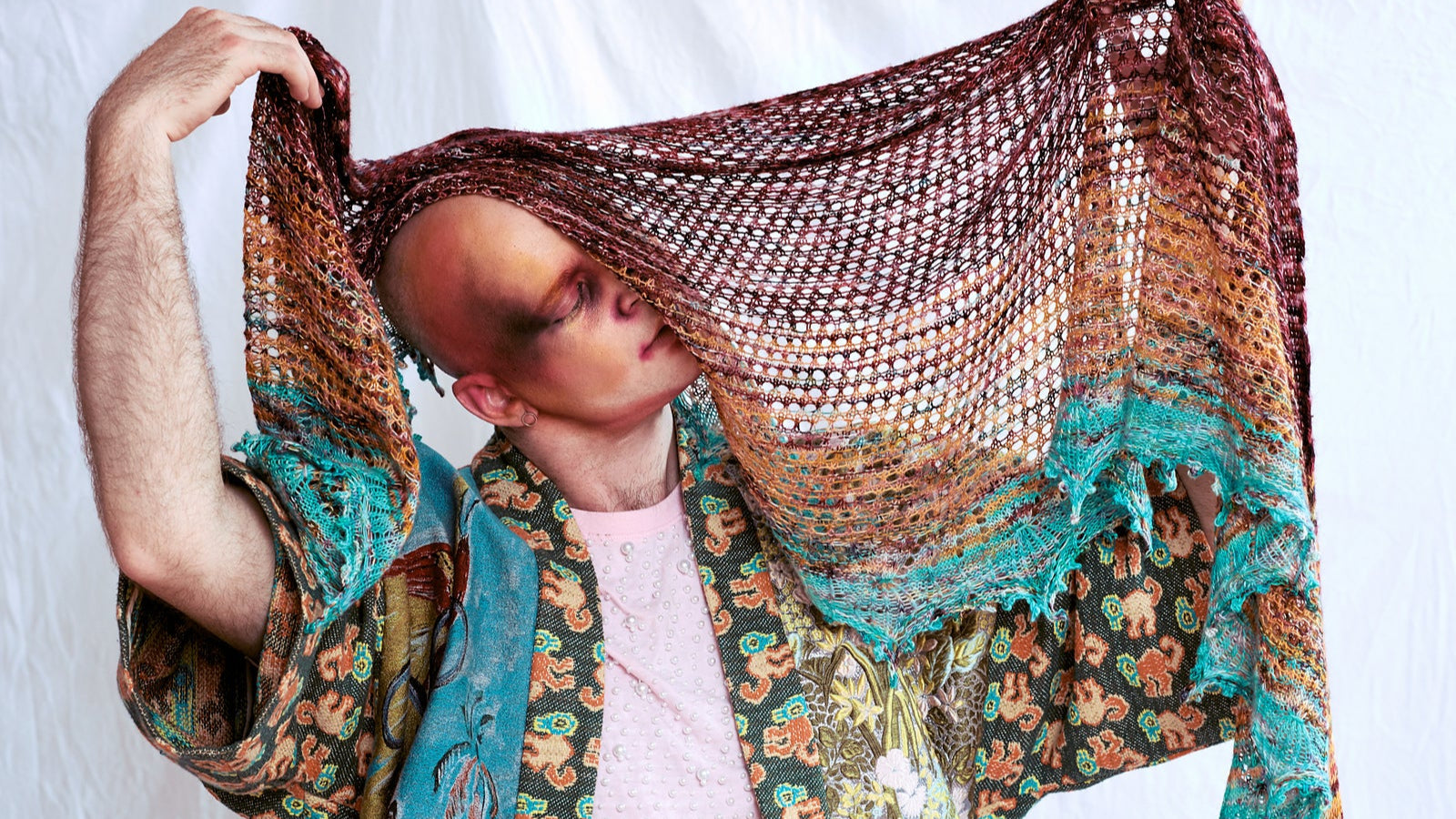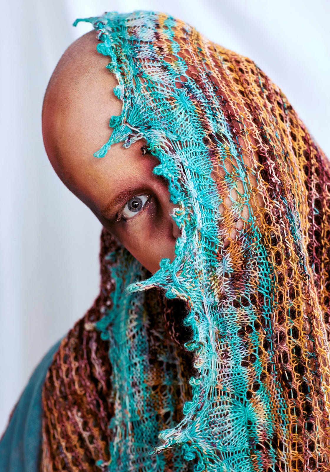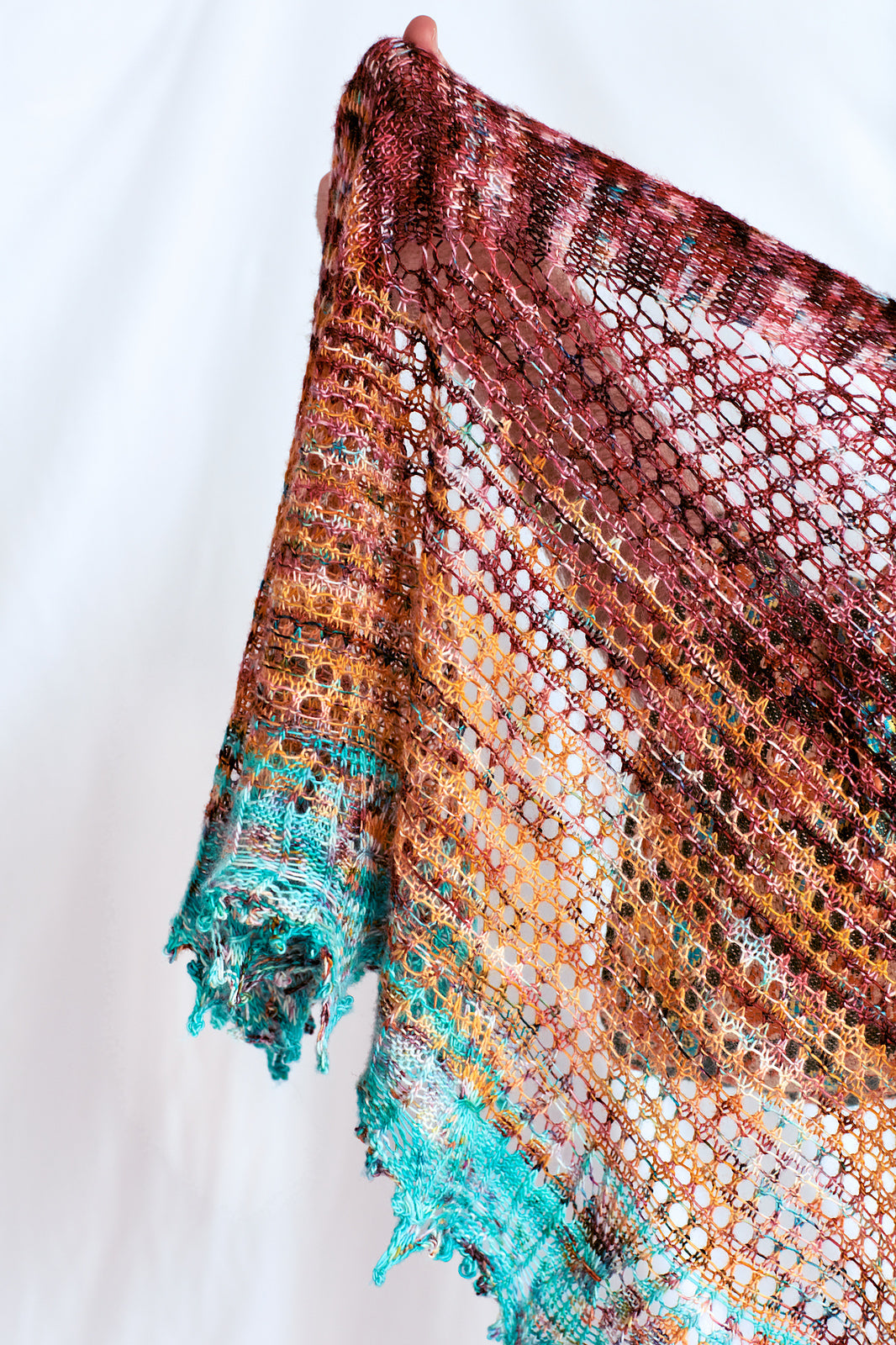 Twisted stitches grow from the edge with yarn over shaping to form a generous crescent shape. Garter stitch mesh yarn over rows are super easy to knit and produce a lovely lightweight fabric. The border features meandering twisted stitches and a fun smocked technique for extra flair.