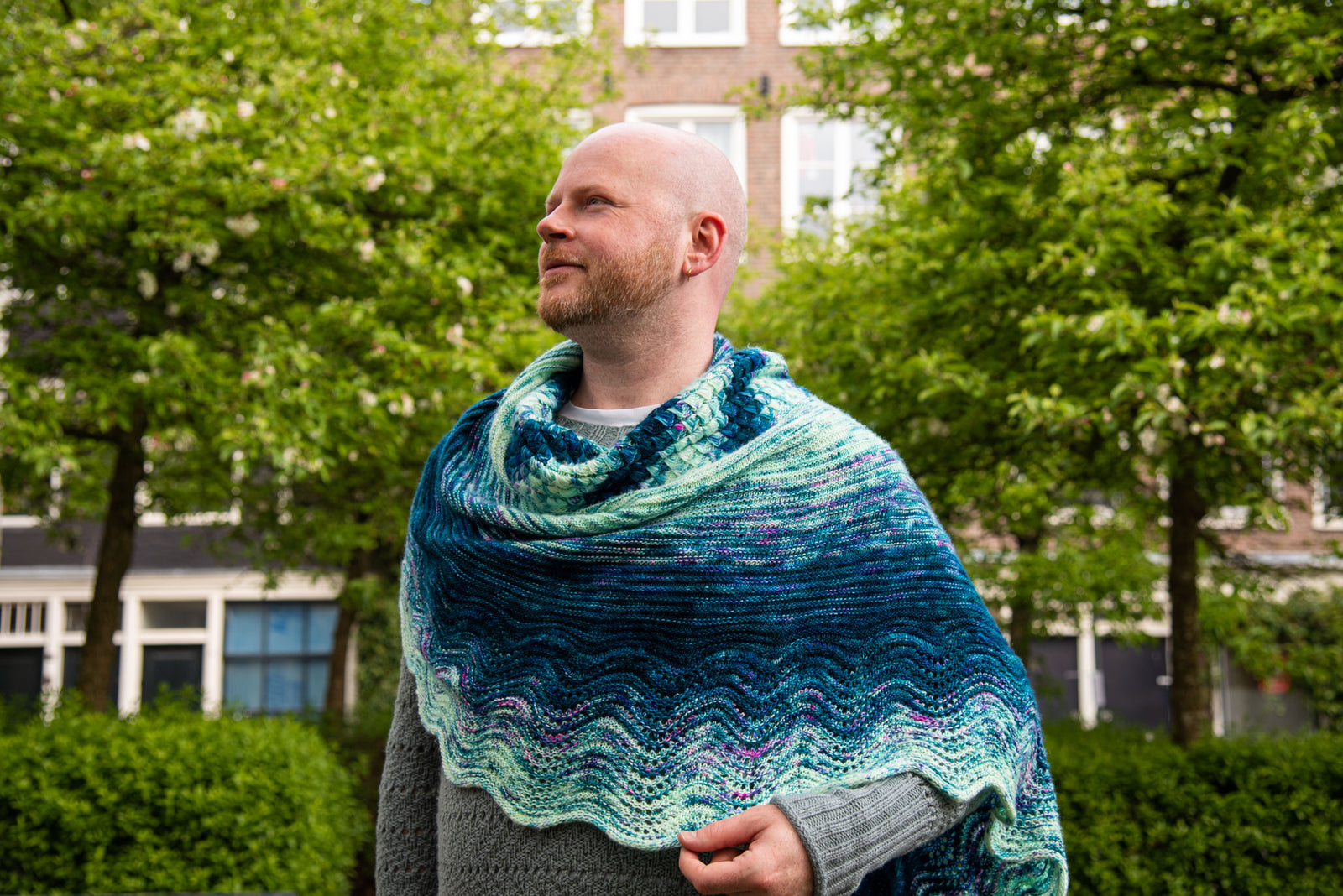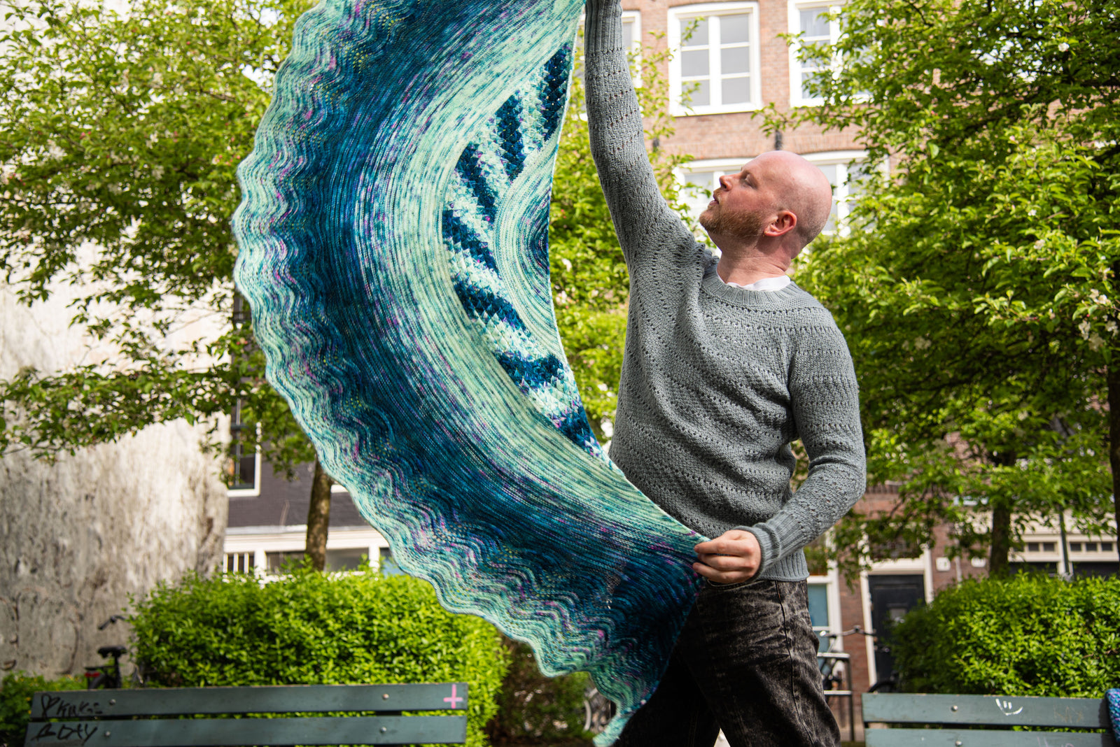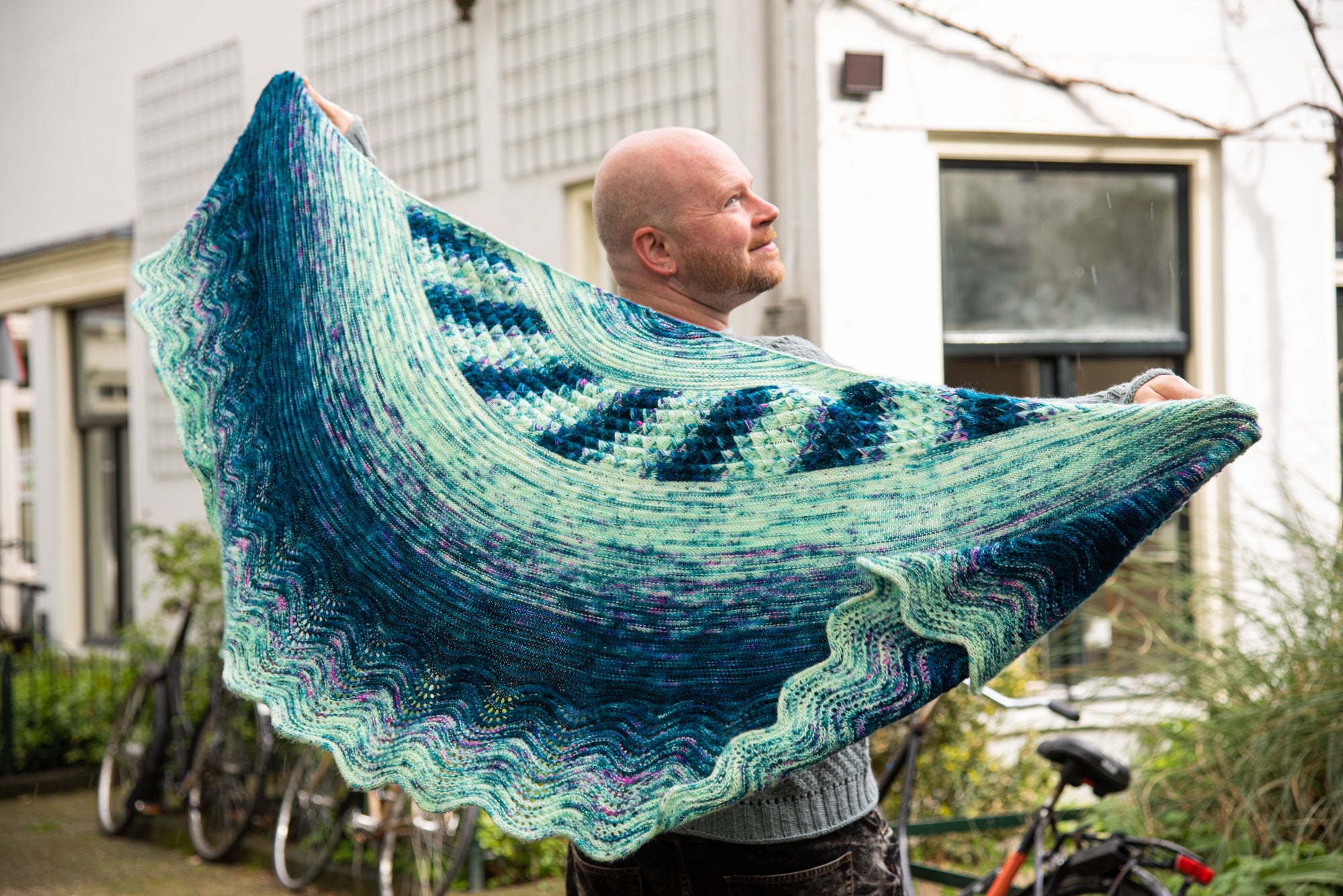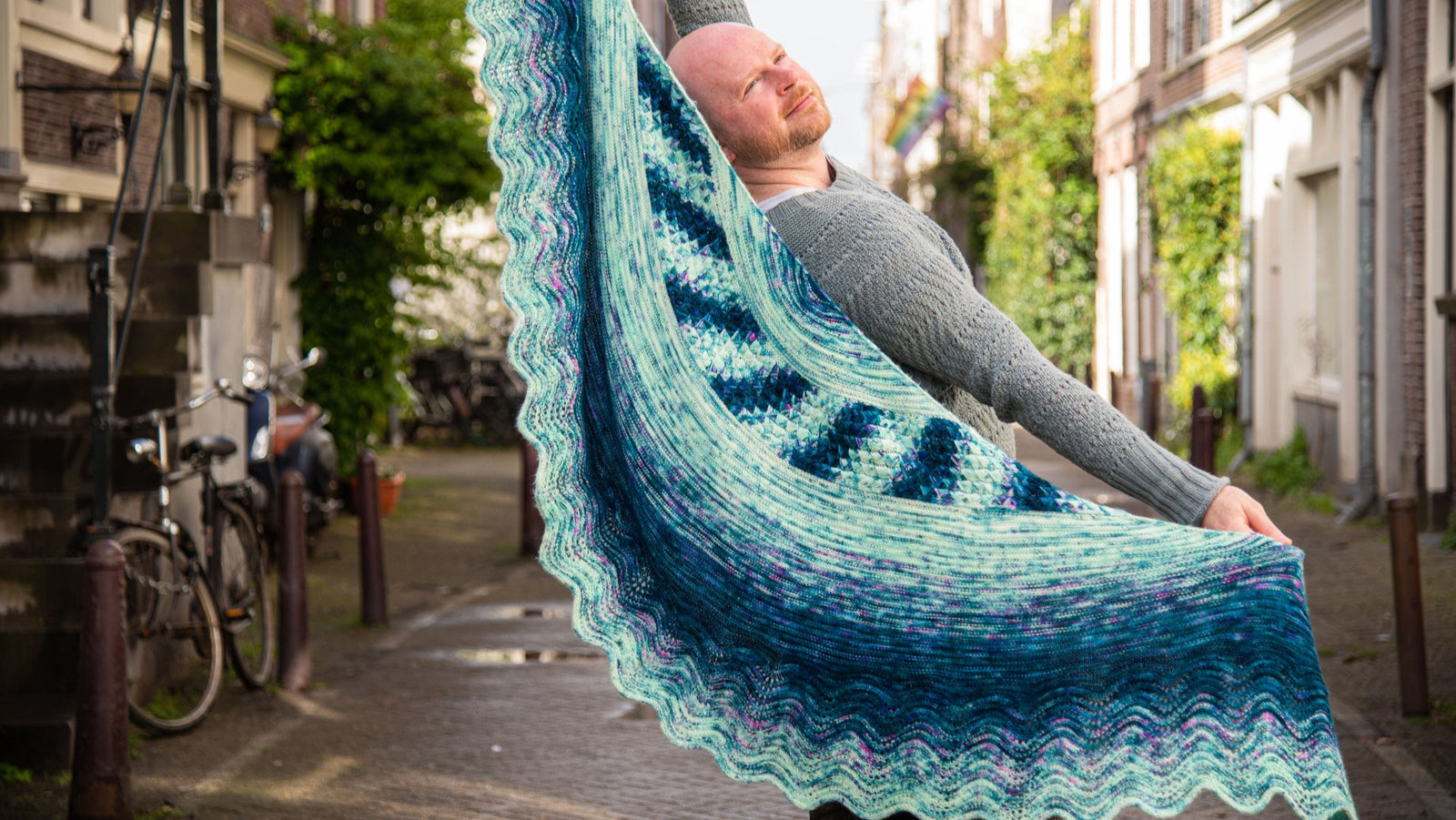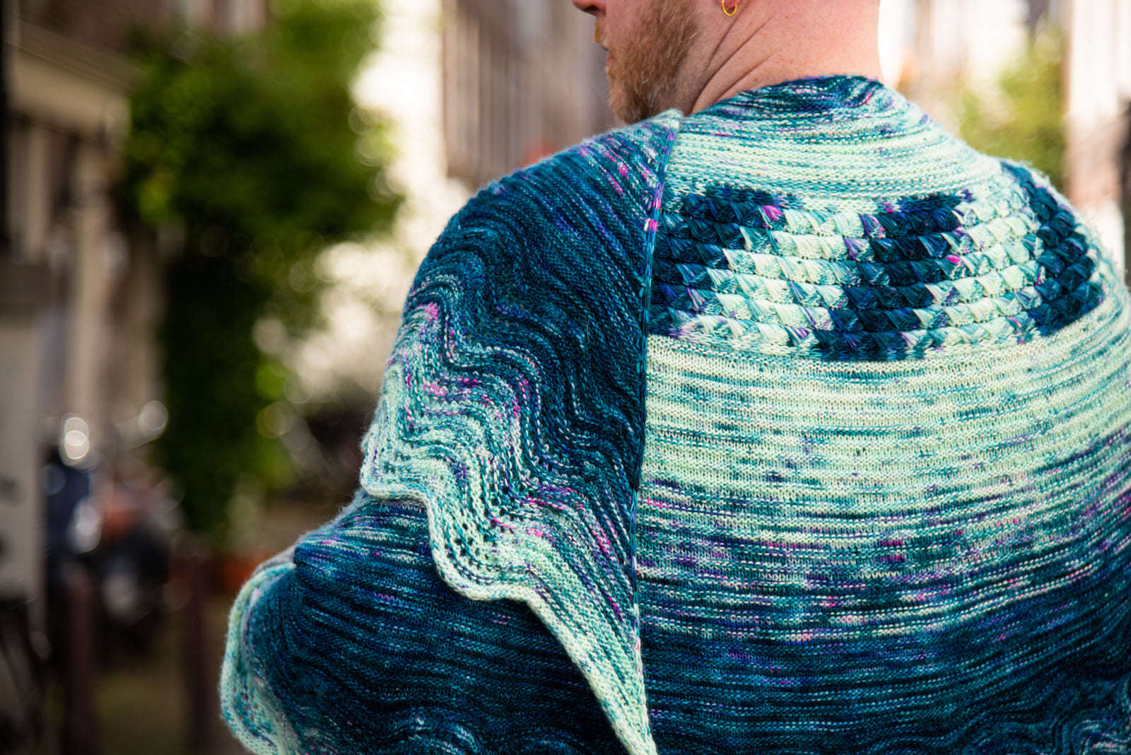 Choose your favourite five skein fade and watch your colours effortlessly melt together in this stunning shawl from Westknits. The first section begins with squishy dip stitches reminiscent of ocean waves or the scales of a mermaid's tail. Stitches are then picked up from one edge as you decrease toward the top centre of the shawl. Along the other edge, more stitches are picked up as you continue to fade your colours towards a wavy border. Enjoy the relaxing rows of this soothing shawl project as you knit a mesmerising colourful work of art!