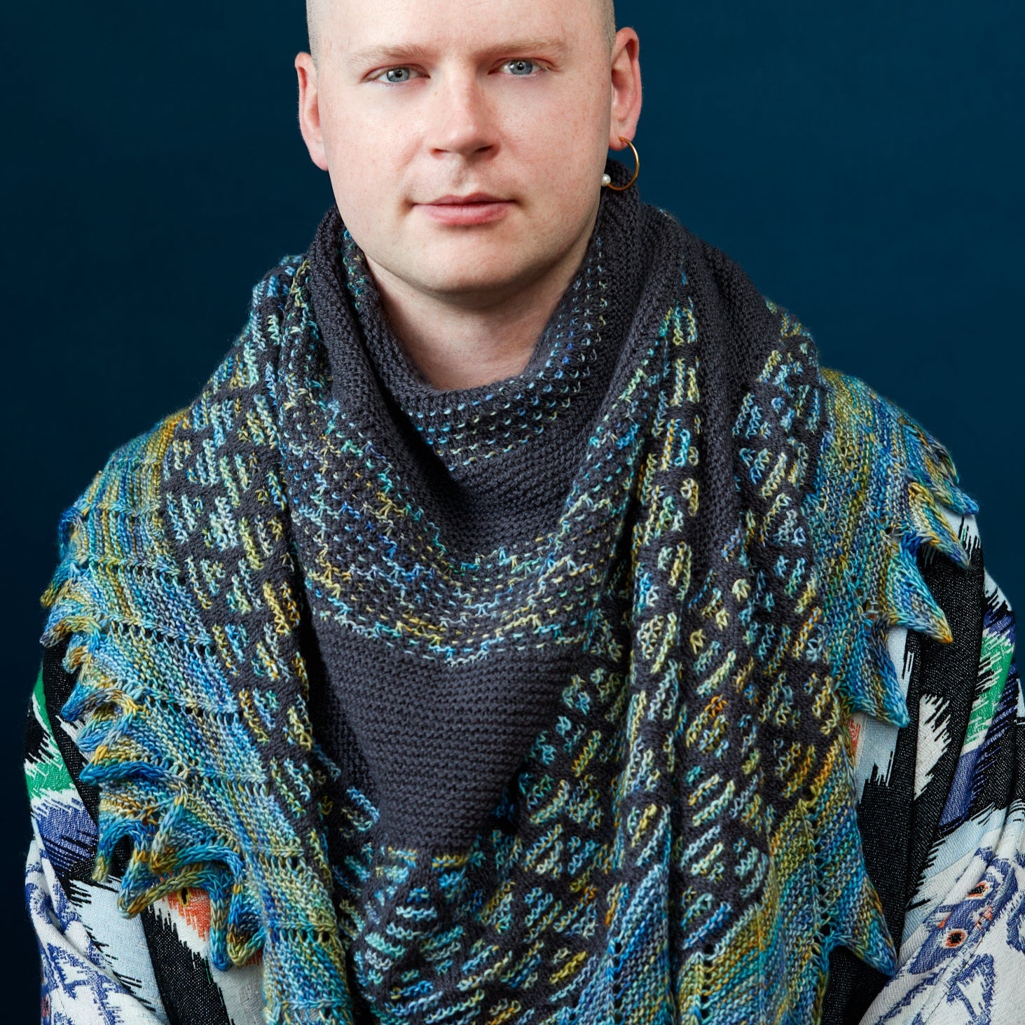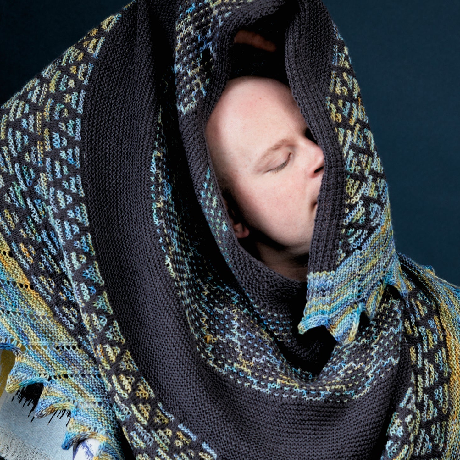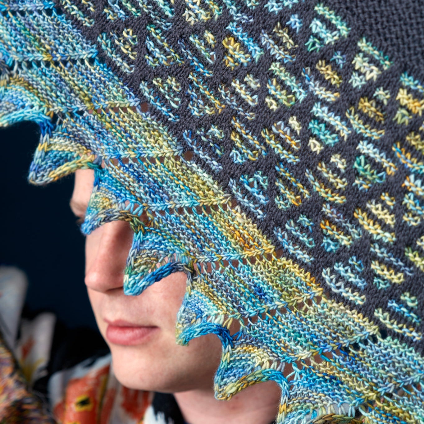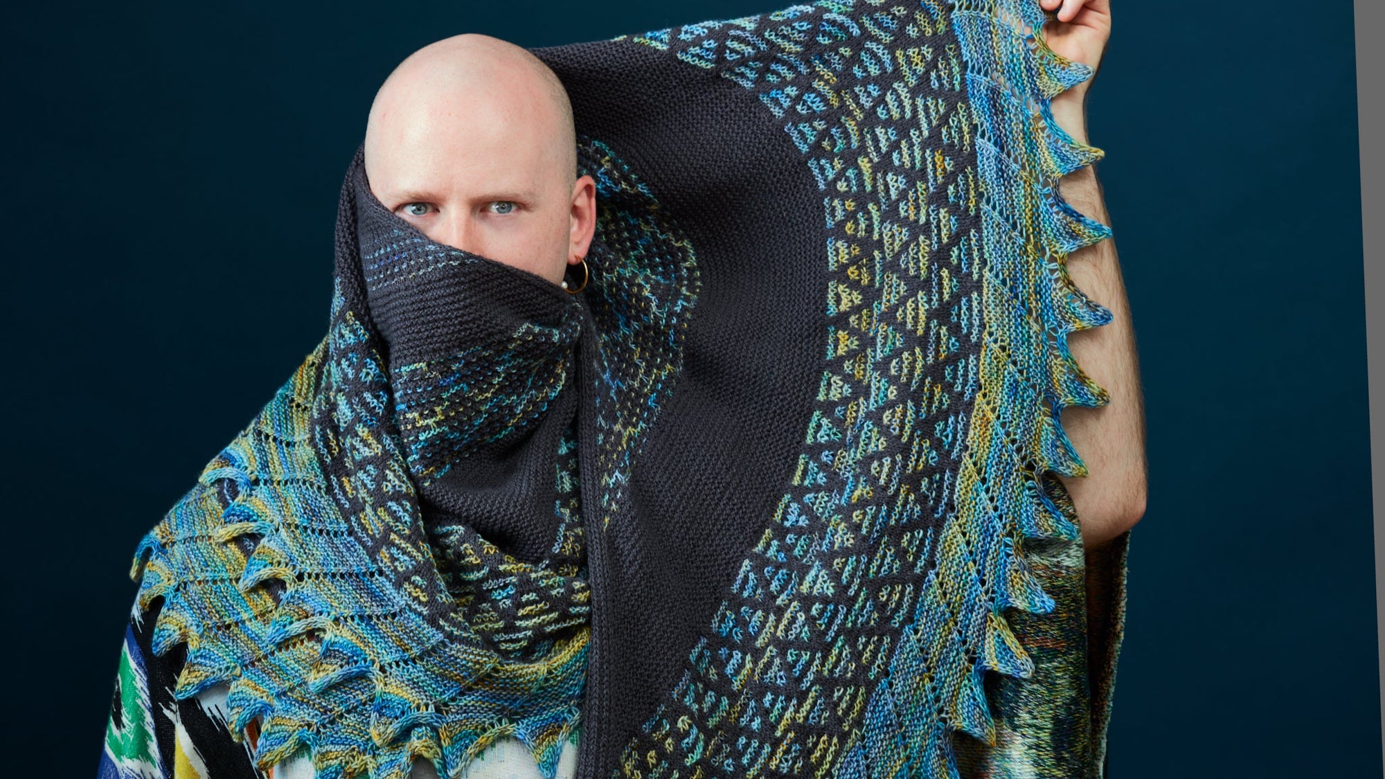 This semi-circular shawl is all about showcasing beautiful hand dyed colours together with our solid West Wool yarn as the main colour. Two skeins of each colour yield this large top-down shawl decorated with graphic mosaic slip stitch patterns. Each slip stitch motif is followed by easy garter stitch for a relaxing knitting experience. The colourful sections and final edging feature the glowing dye artistry of Walk Collection. Diagonal eyelets and short row wedges during the bind off give a final flair to the Mosaic Musings shawl.