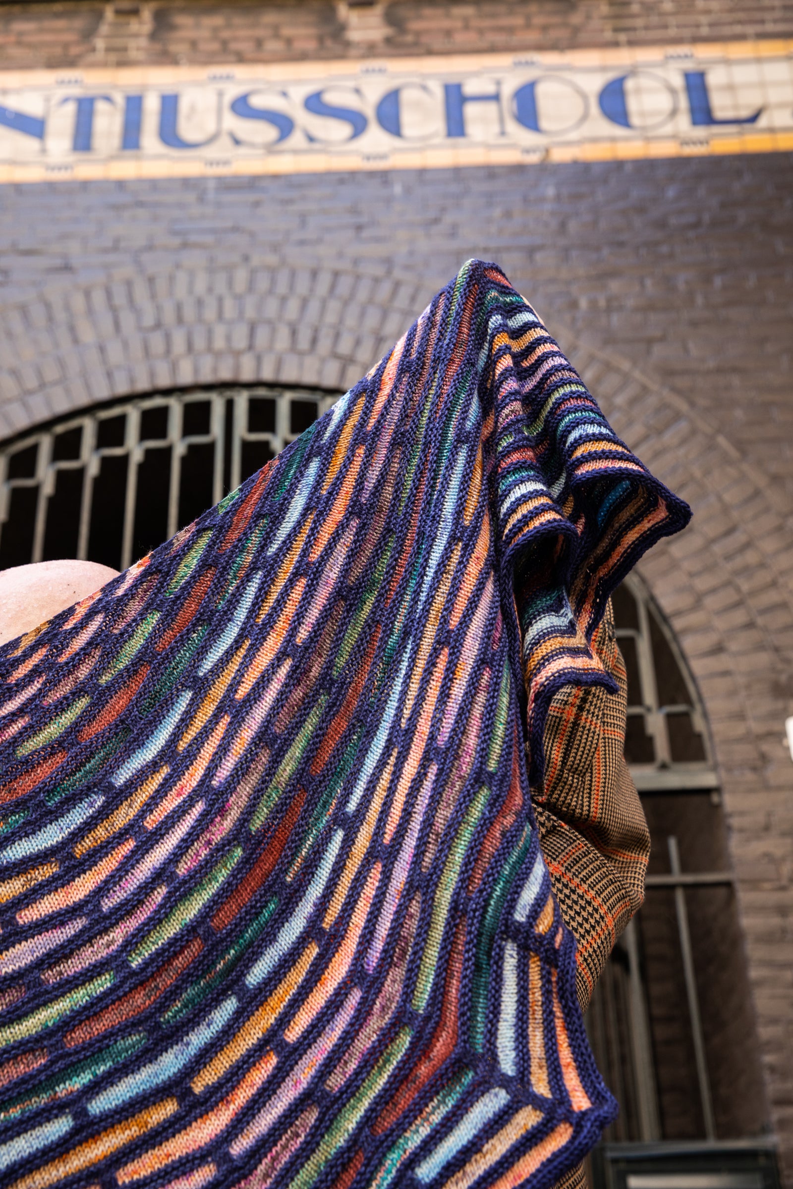 Yarn requirements: 200g of a main colour and 50g each of 8 contrasts