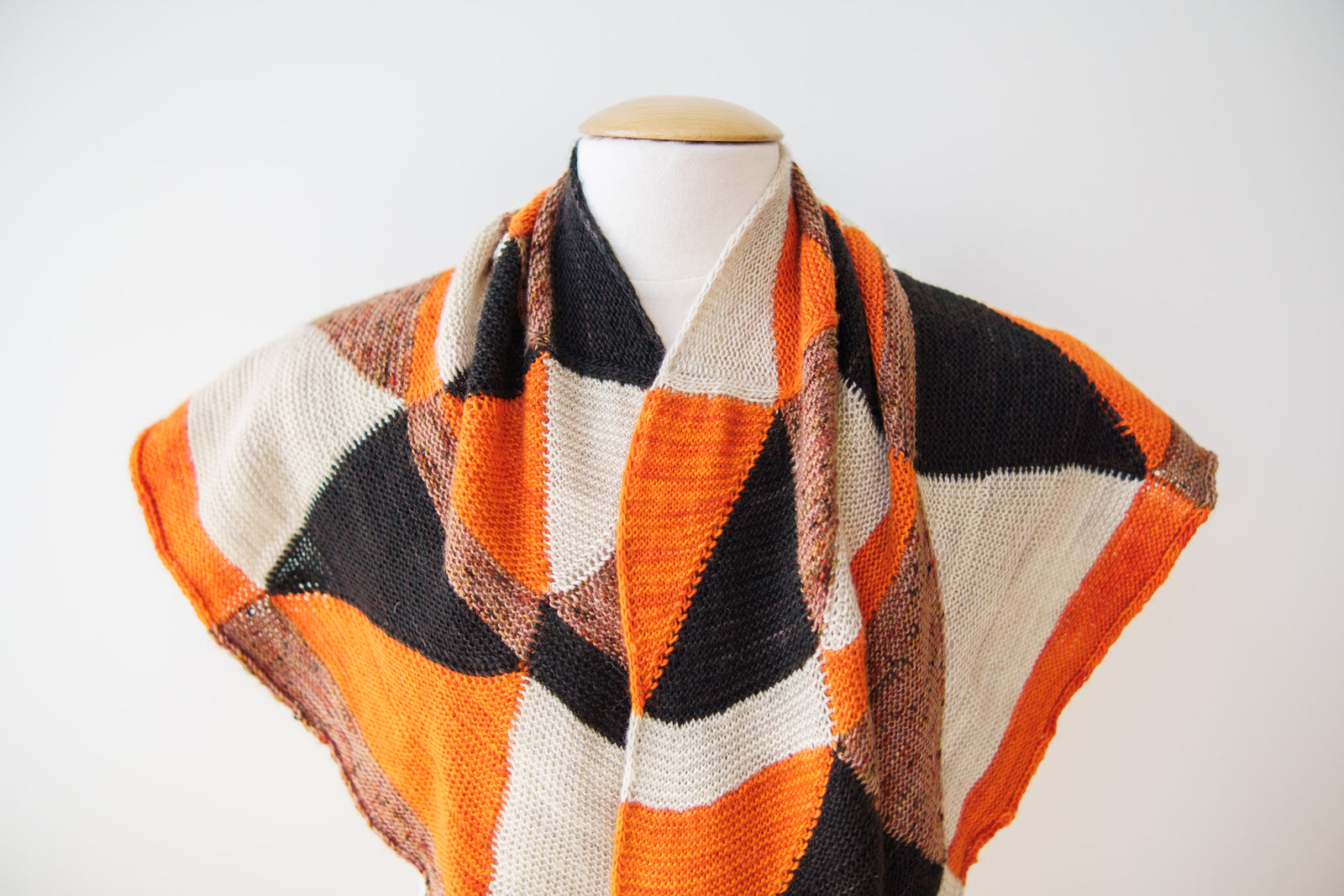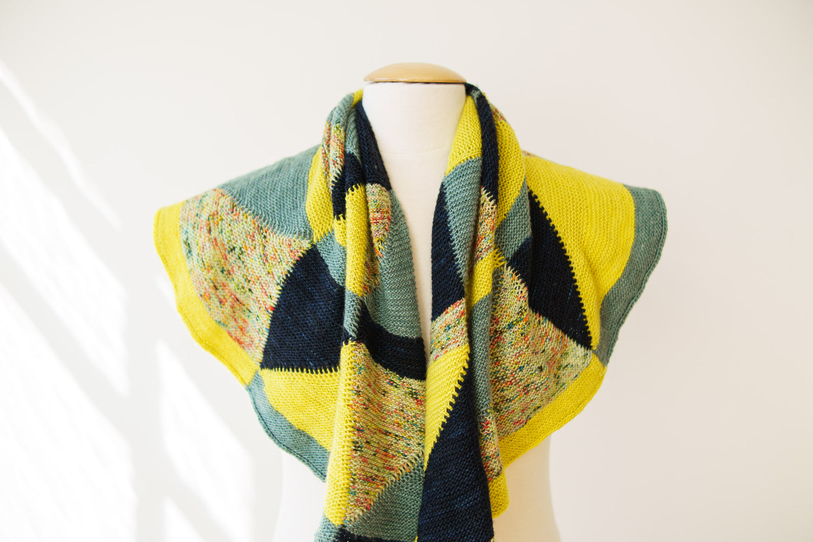The Pinwheel Pop Shawl is a fabulously graphic garter stitch shawl. Each section is knit individually while being attached to a previous section for a completely seamless modular project. The gorgeous geometric short row wedges are a perfect canvas for showcasing the gorgeous colour variations in those hand-dyed skeins and is an ideal introduction to multi-colour knitting. The pattern includes a schematic illustration to help you visualise each section and plan your colors. Knit your Pinwheel Pop Shawl with four colors or create an adventurous multi-colour version!