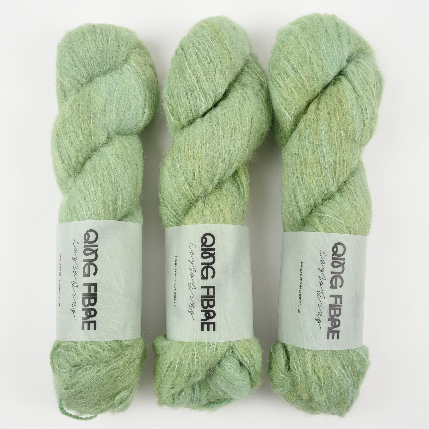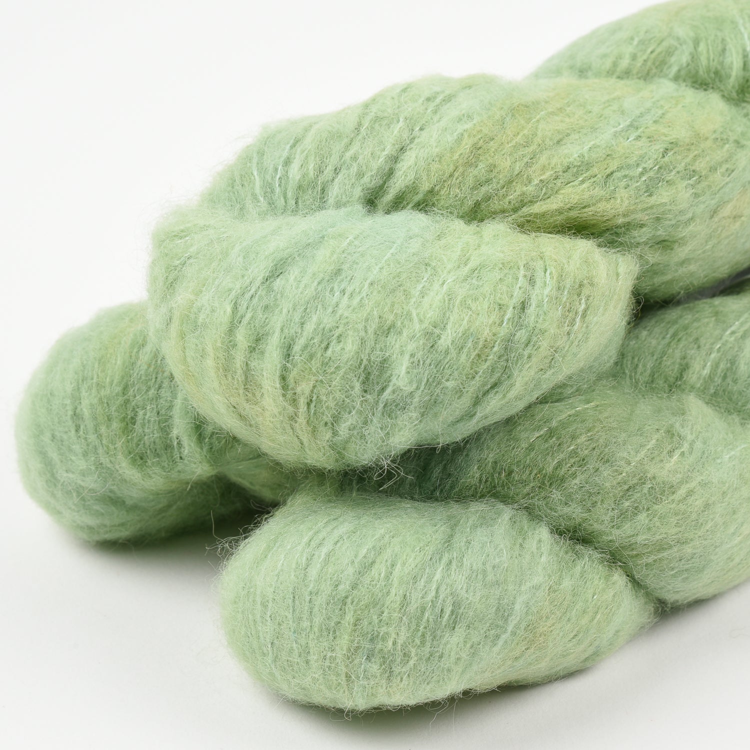Qing Fibre’s Melted Baby Suri is a fluffy blend of Baby Suri Alpaca, Merino, and Silk. Perfect for cloudy soft garments and accessories.