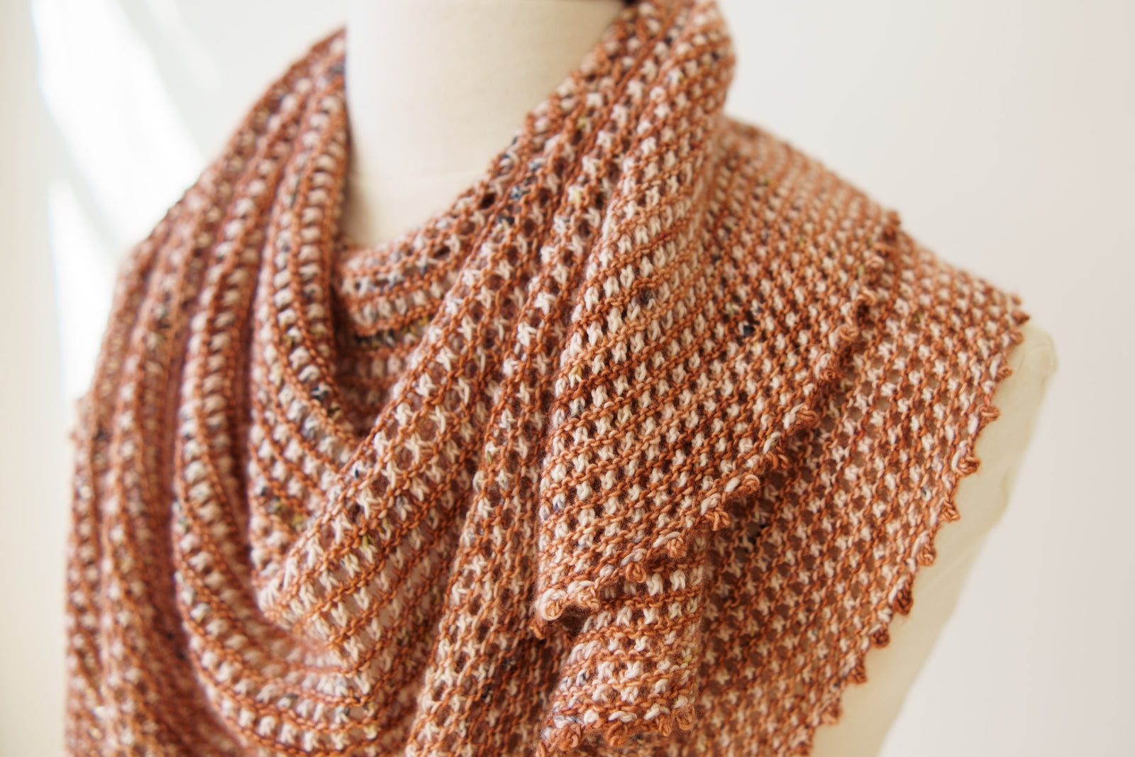 This pattern was originally released as a bonus pattern during the Westknits Yarn Along 2024! Designed for only two colours of fingering weight yarn, start at the top centre and construct a simple semi-circular shawl. A simple motif of garter stitch ridges separated by simple yarn over eyelets decorate the fabric towards a picot border framed with beautiful I-cord edges. Although written with beginner knitters in mind with video tutorials linked throughout, knitters of all skill levels can find a lot of joy in this relaxing and breezy Westknits shawl.