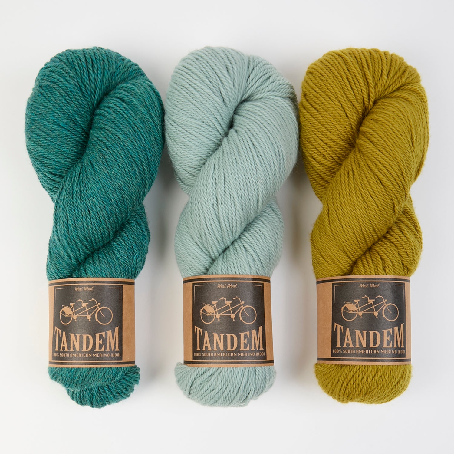 This stunning kit from West Wool features three skeins of DK weight Tandem in three different shades.If you need inspiration, this kit works perfectly for the Keating Baby Blanket by Malia Mae Joseph.