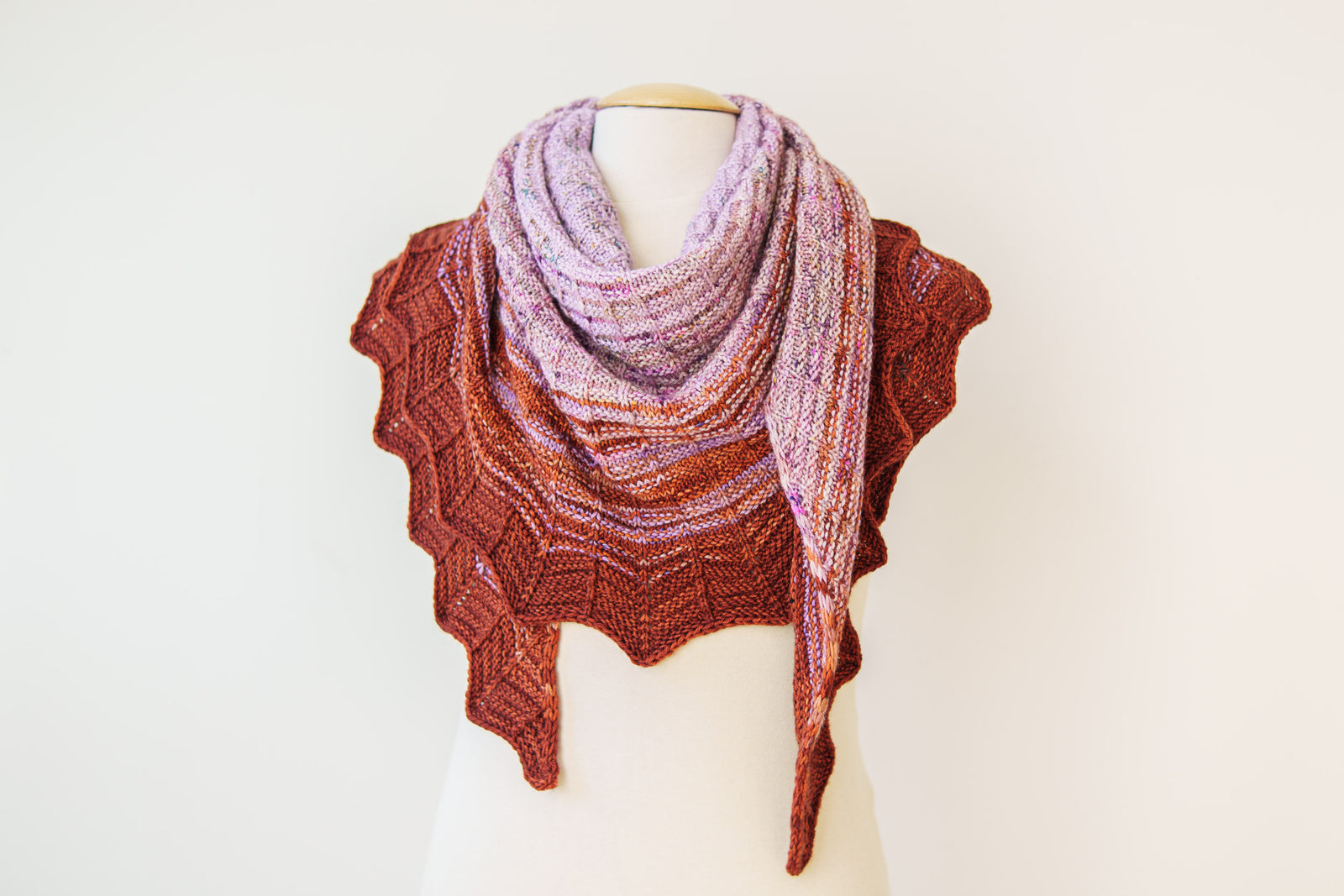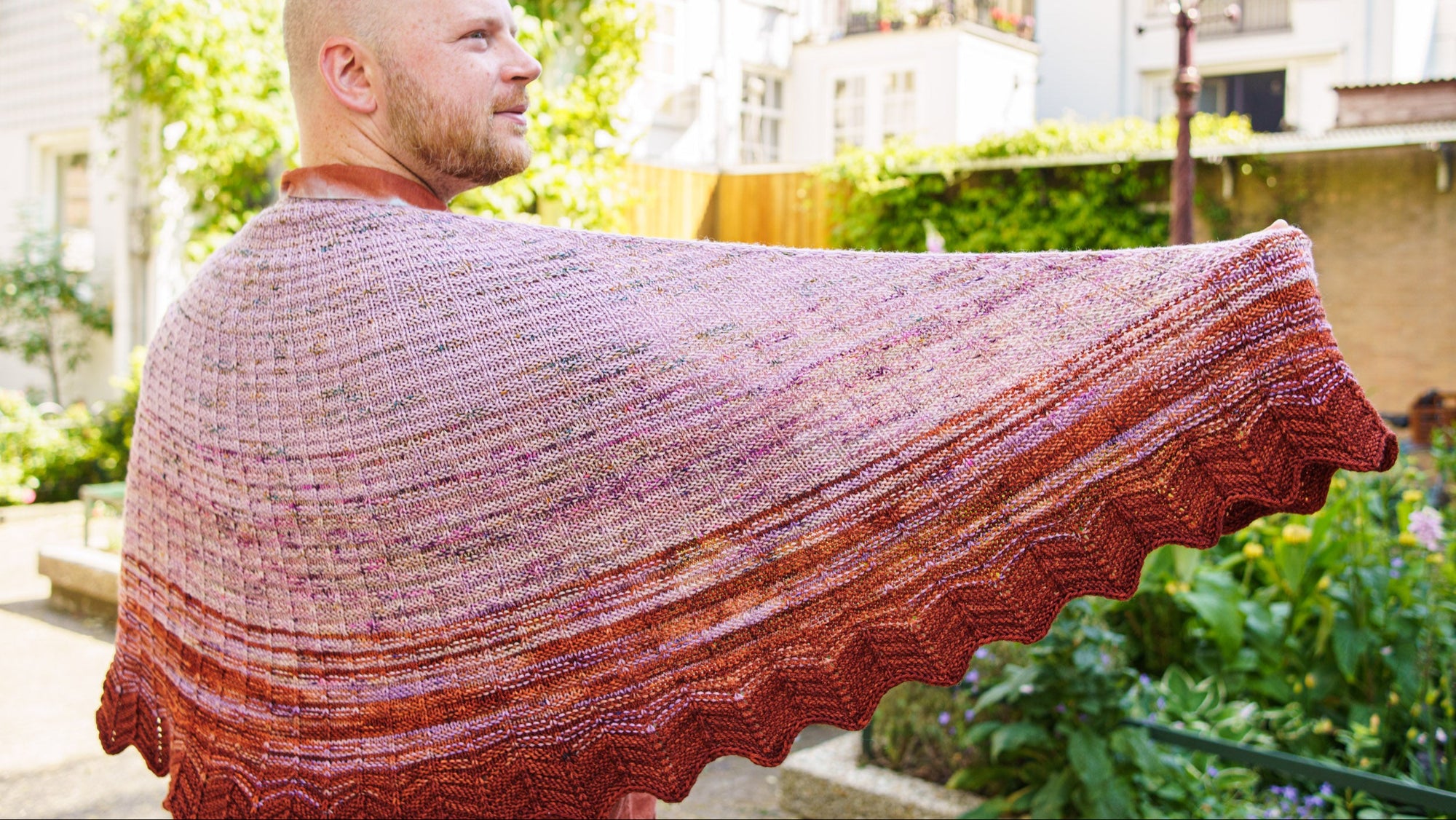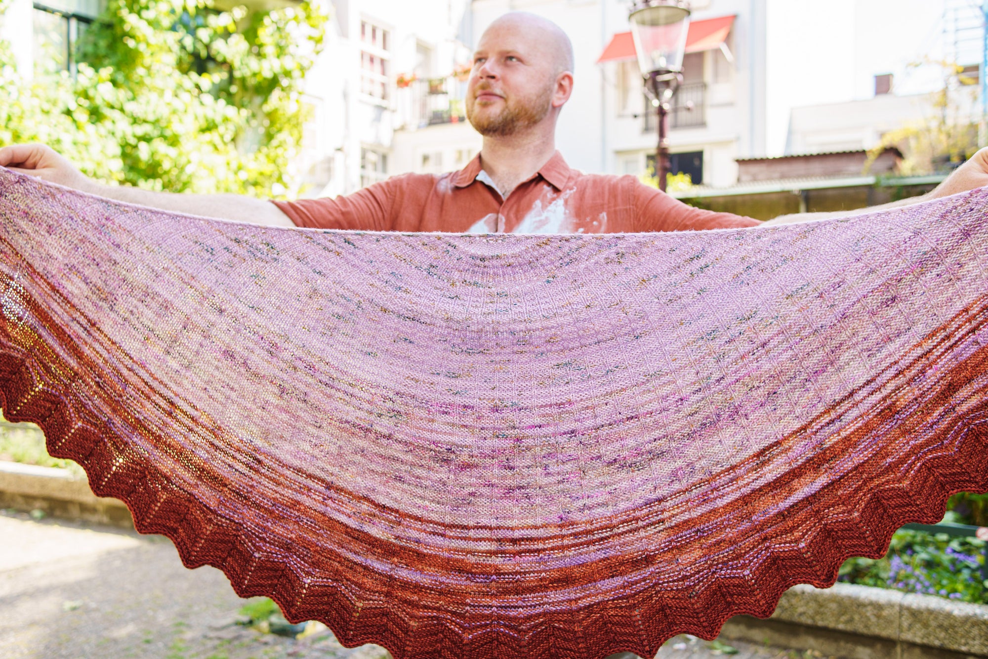 Watch four colours of DK weight yarn magically melt together in the Woolly Waffle Shawl by Westknits. A textured rib stitch forms beautiful waffle textured columns that flow towards the chevron border and i-cord edge, finishing with a flourish. The simple stitch pattern makes for a relaxing knit while your colours effortlessly transition. Choose your favourite four-skein double knit fade kit and watch your colours shine in this elegant semi-circle shawl.