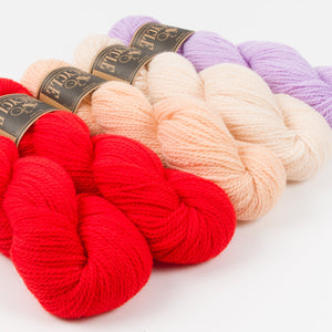 Yarn that is dyed in batches may have some variation in colour between skeins taken from different lots. We take great care in photographing our kits and yarns accurately, however colours may vary slightly from the pictures.