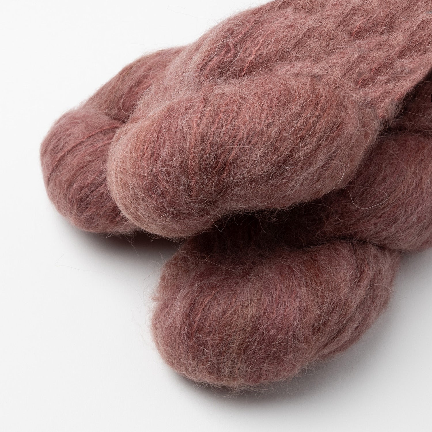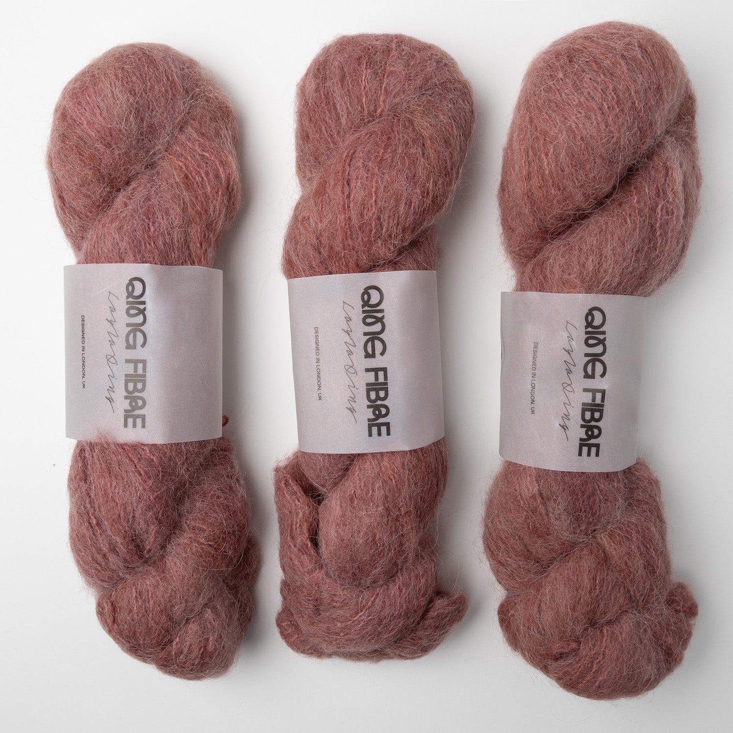 Qing Fibre’s Melted Baby Suri is a fluffy blend of Baby Suri Alpaca, Merino, and Silk. Perfect for cloudy soft garments and accessories.