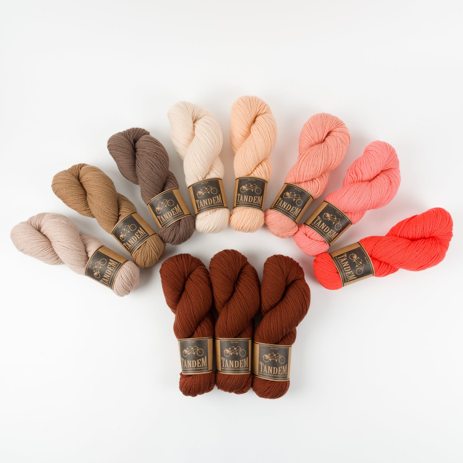 • Size: XS, S, and M: 4 skeins of West Wool Tandem in Chestnut