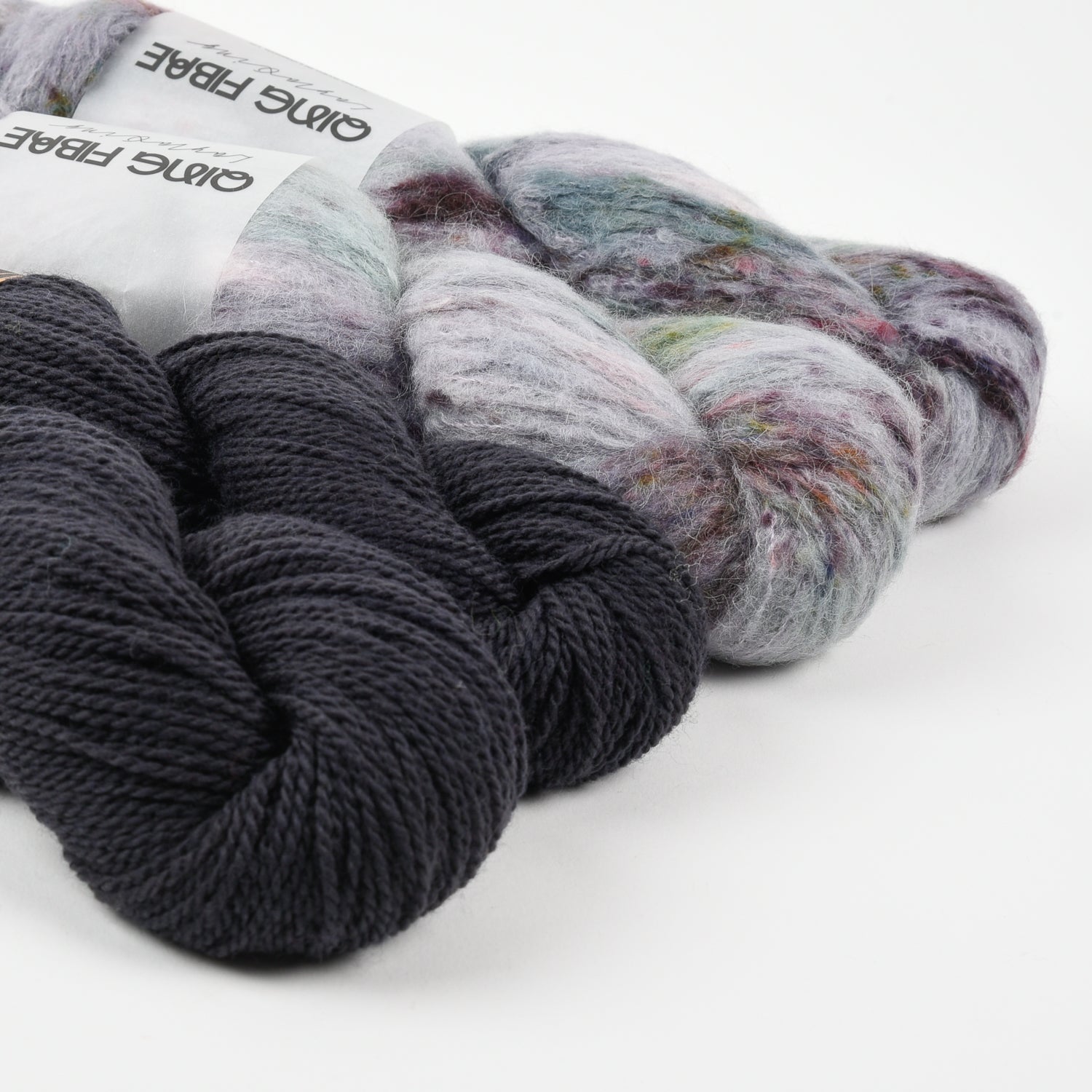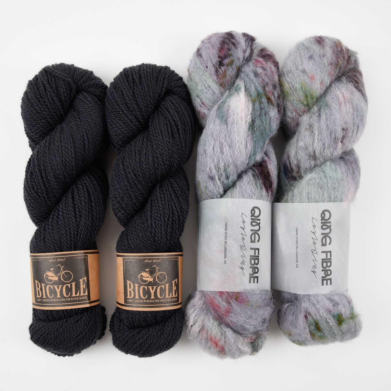 This stunning kit has a strong solid from West Wool and a beautifully soft and fluffy contrast from Qing Fibre. If you need inspiration, it can be used to knit any of these Westknits shawls.