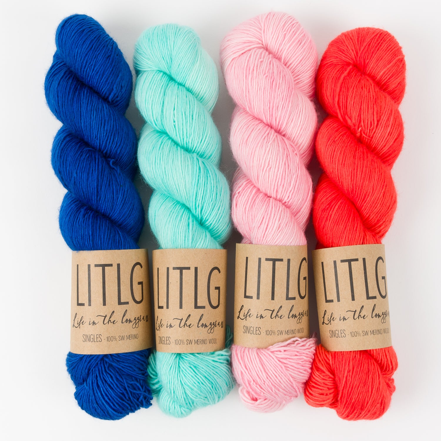 This gorgeous Life in The Long Grass kit contains four skeins of fingering weight yarn. If you need inspiration, it can be used to knit Mautinoa by Malia Mae Joseph or any of these Westknits shawls