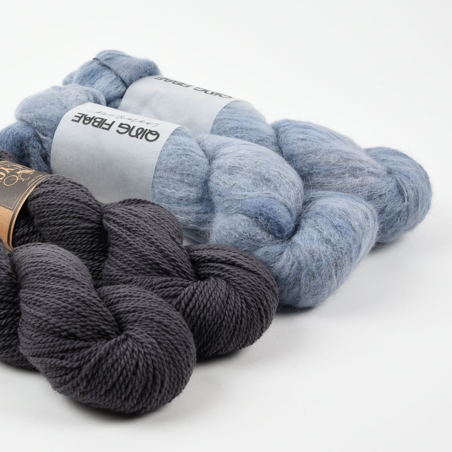 This stunning kit has a strong solid from West Wool and a beautifully soft and fluffy contrast from Qing Fibre. If you need inspiration, it can be used to knit any of these Westknits shawls.