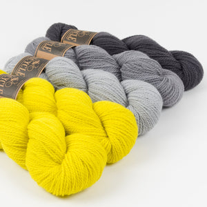 Yarn that is dyed in batches may have some variation in colour between skeins taken from different lots. We take great care in photographing our kits and yarns accurately, however colours may vary slightly from the pictures.