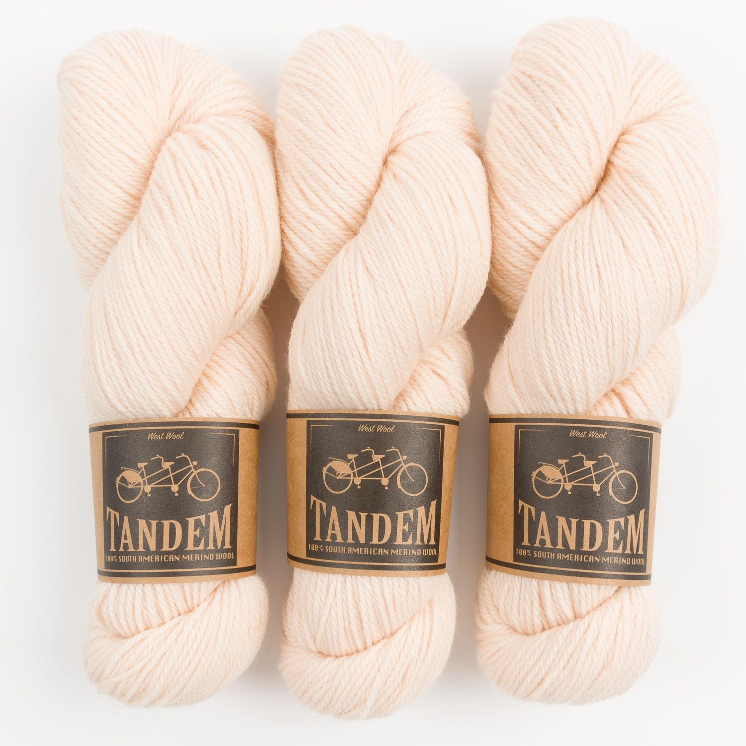 • Sizes: 2, 3, and 4: Two skeins of West Wool Tandem in White Peach
