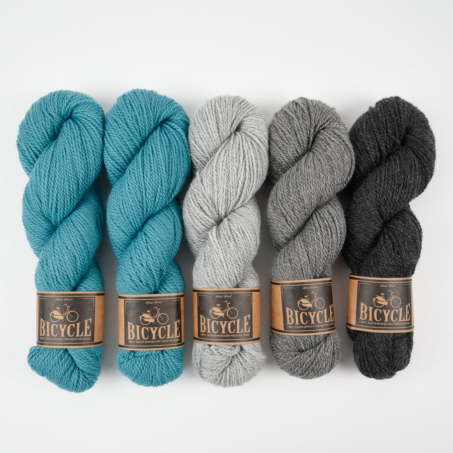 This beautifulWest Wool kit contains ten skeins of fingering weight yarn.With four skeins of a main colour and three gorgeous contrasting colours, this kit can be used for any of these Westknits shawls.