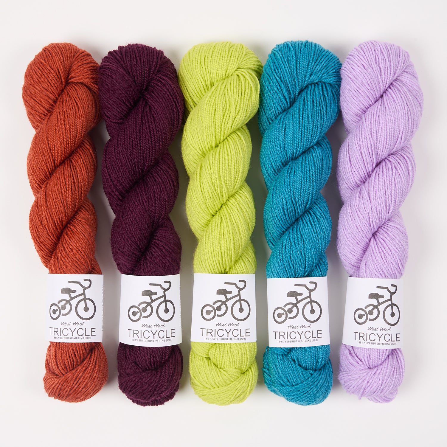 This beautiful West Wool kit contains ten skeins of fingering weight yarn. If you're looking for project inspiration, it will work up perfectly for the Delectable Collectible Shawl from Westknits!