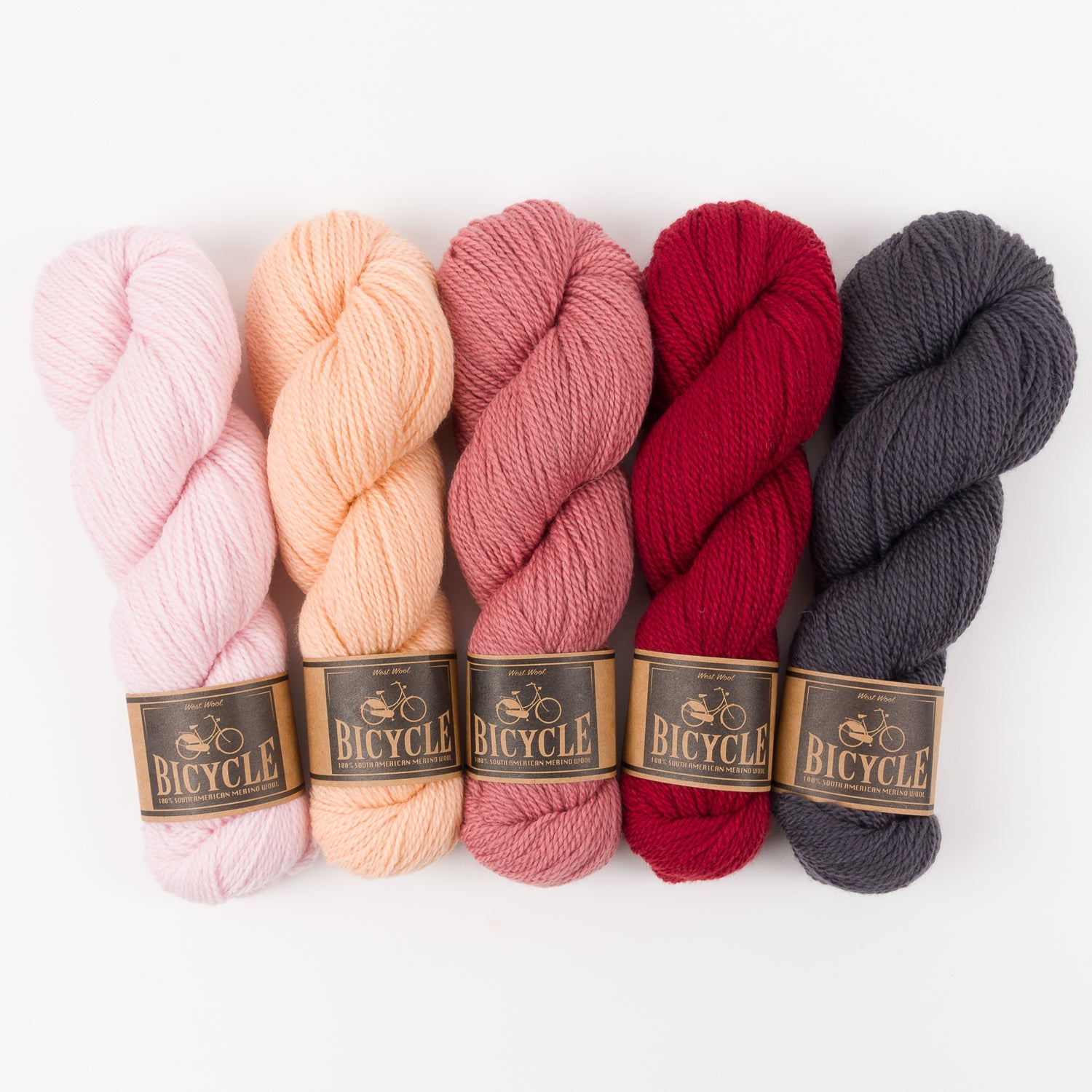 This beautiful West Wool kit contains five skeins of fingering weight yarn. If you're looking for project inspiration, it will work up perfectly for any of these Westknits shawls.