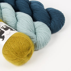 This stunning kit fromWest Woolcontains six skeins of fingering weight yarn and two balls of lace weight mohair in three gorgeous colours. If you need inspiration, it can be used to knit the splendidStriped Esjan Shawlby Westknits.