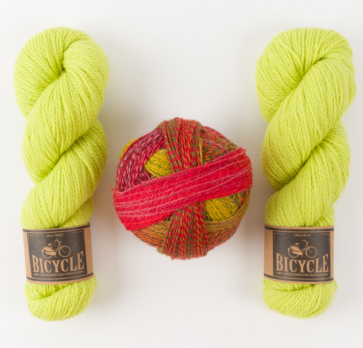 • Four skeins of West Wool Bicycle in Pickle Juice
