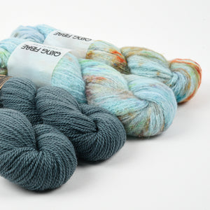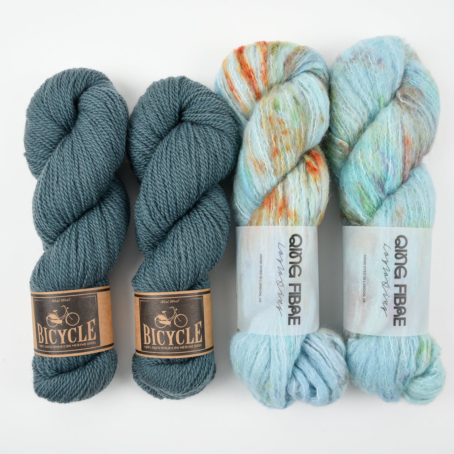 This stunning kit has a strong solid from West Wool and a beautifully soft and fluffy contrast from Qing Fibre. If you need inspiration, it can be used to knit any of these Westknits shawls.