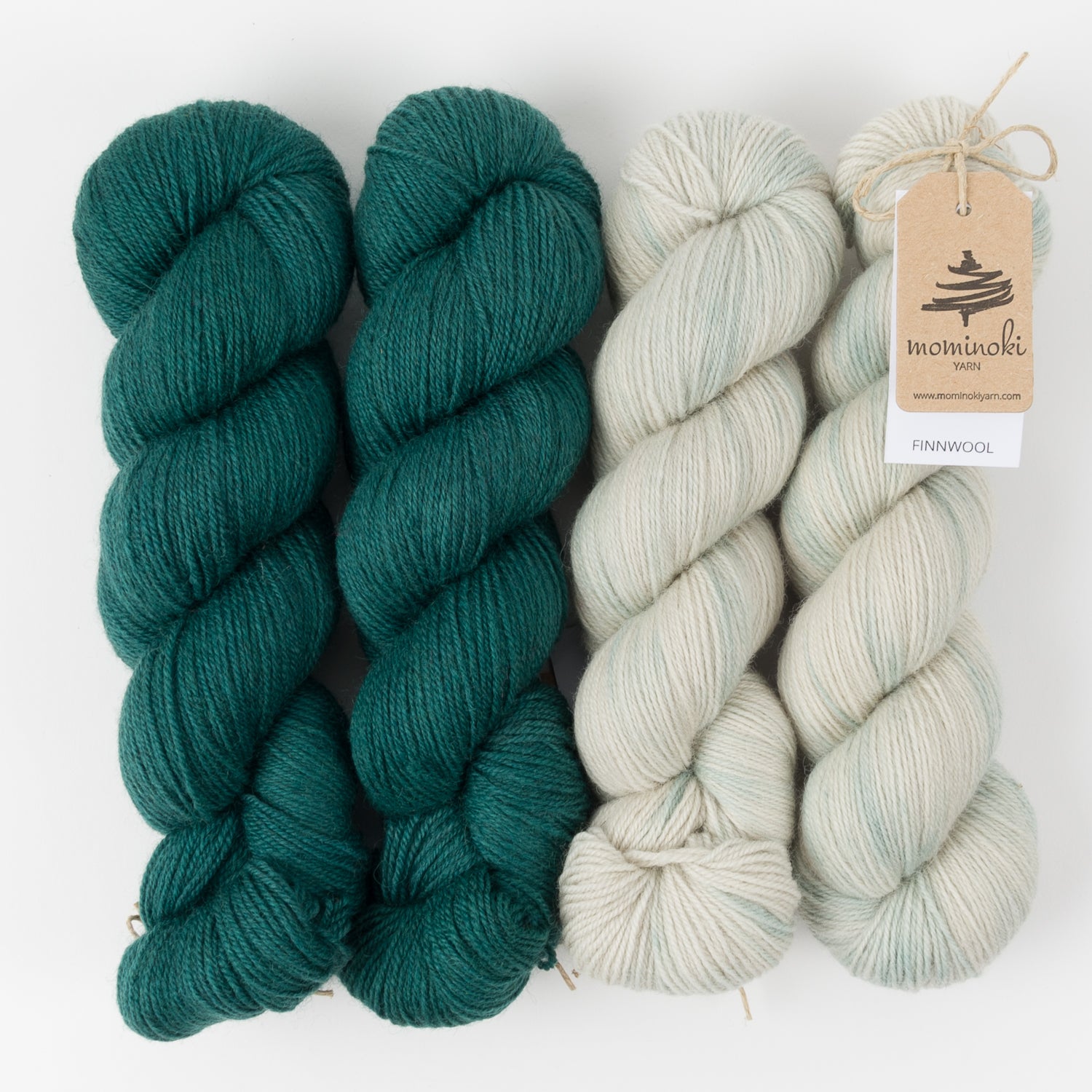 • Two skeins of Mominoki Yarn Finnwool in Evergreen