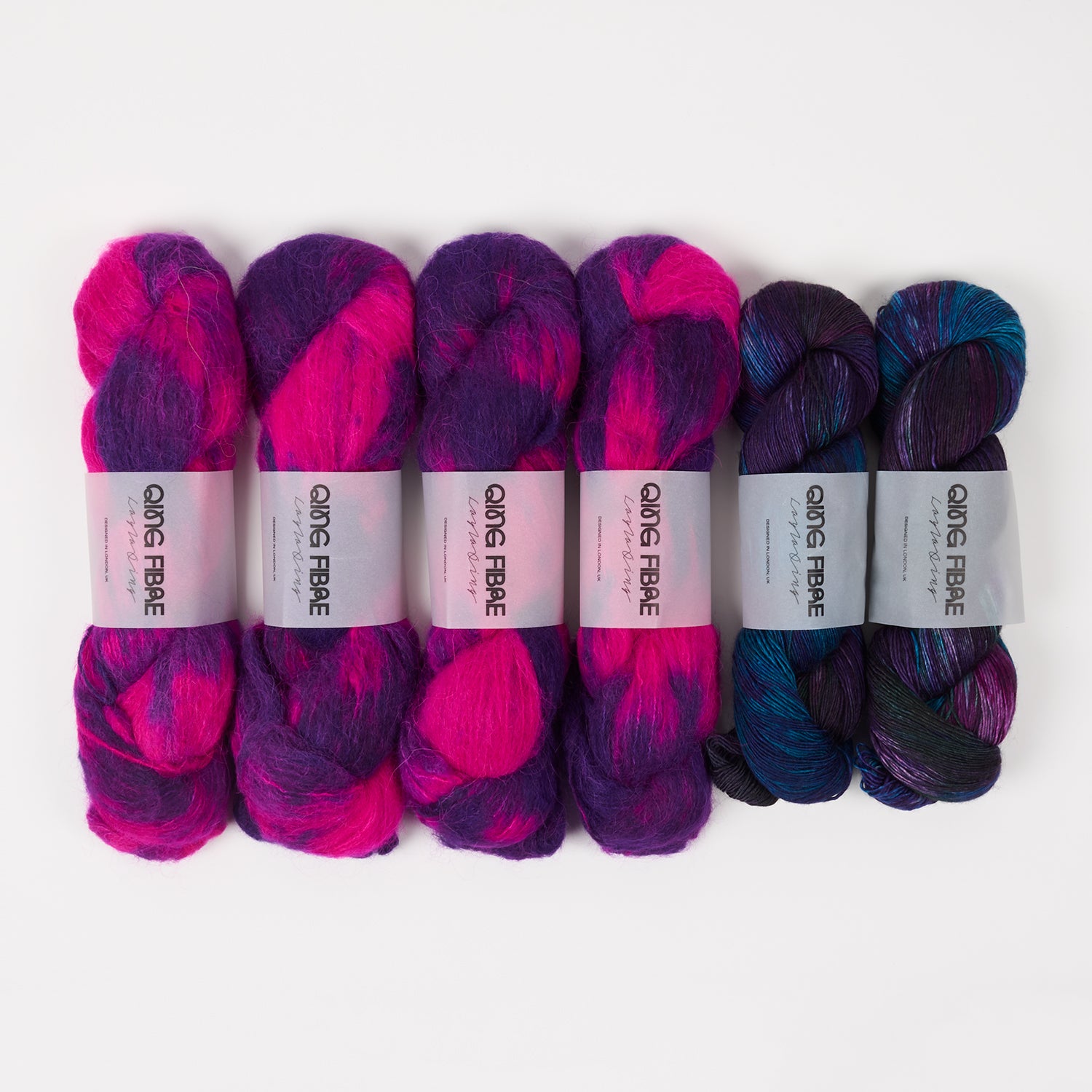 This stunning kit fromQing Fibre has a fingering weight yarn and a beautifully soft and fluffy contrast. If you need inspiration, it can be used to knit any of these Westknits shawls.