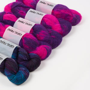 • Four skeins Qing Fibre Melted Baby Suri in Foxglove