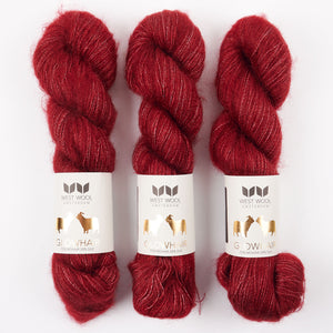 Glowhair is a fun fluffy yarn from our very own West Wool, ideal both for both light and lacy projects with an ethereal drape or even adding a fun mohair pop to your favourite patterns.