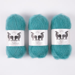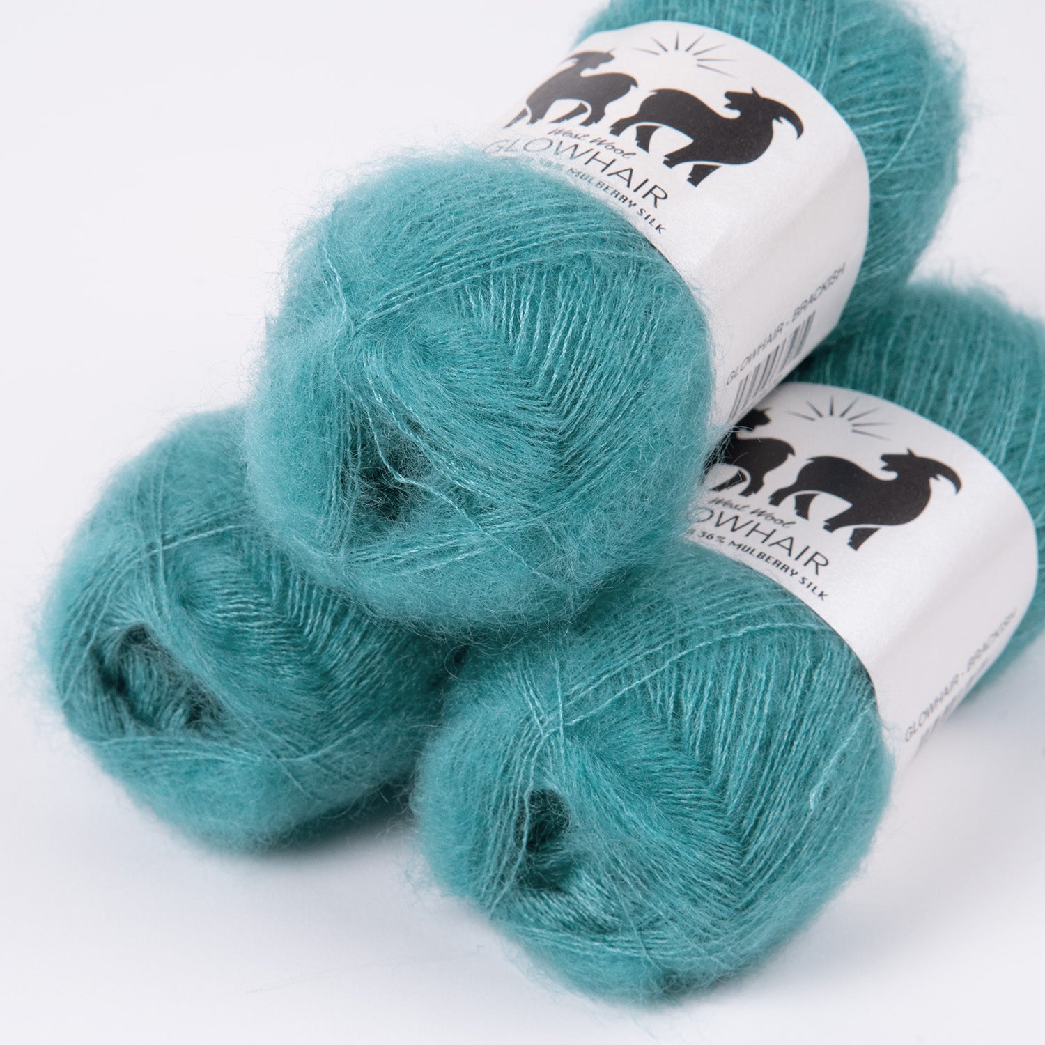 Glowhair is a fun fluffy yarn from our very own West Wool, ideal both for both light and lacy projects with an ethereal drape or even adding a fun mohair pop to your favourite patterns.