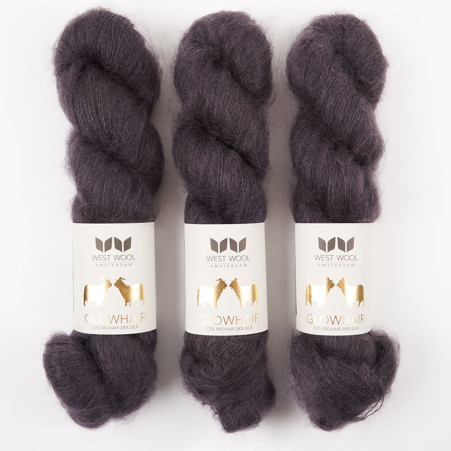 Glowhair is a fun fluffy yarn from our very own West Wool, ideal both for both light and lacy projects with an ethereal drape or even adding a fun mohair pop to your favourite patterns.