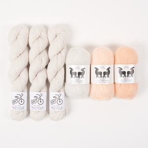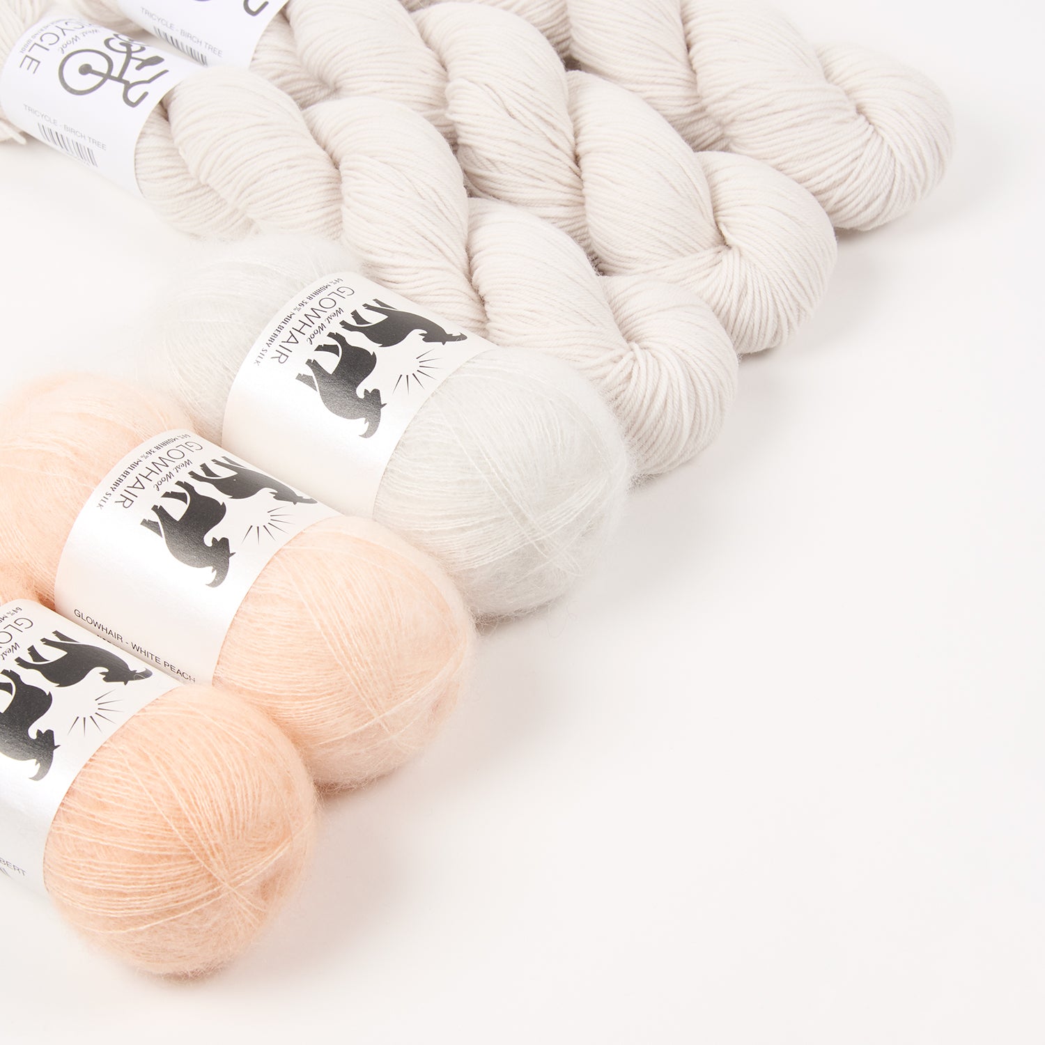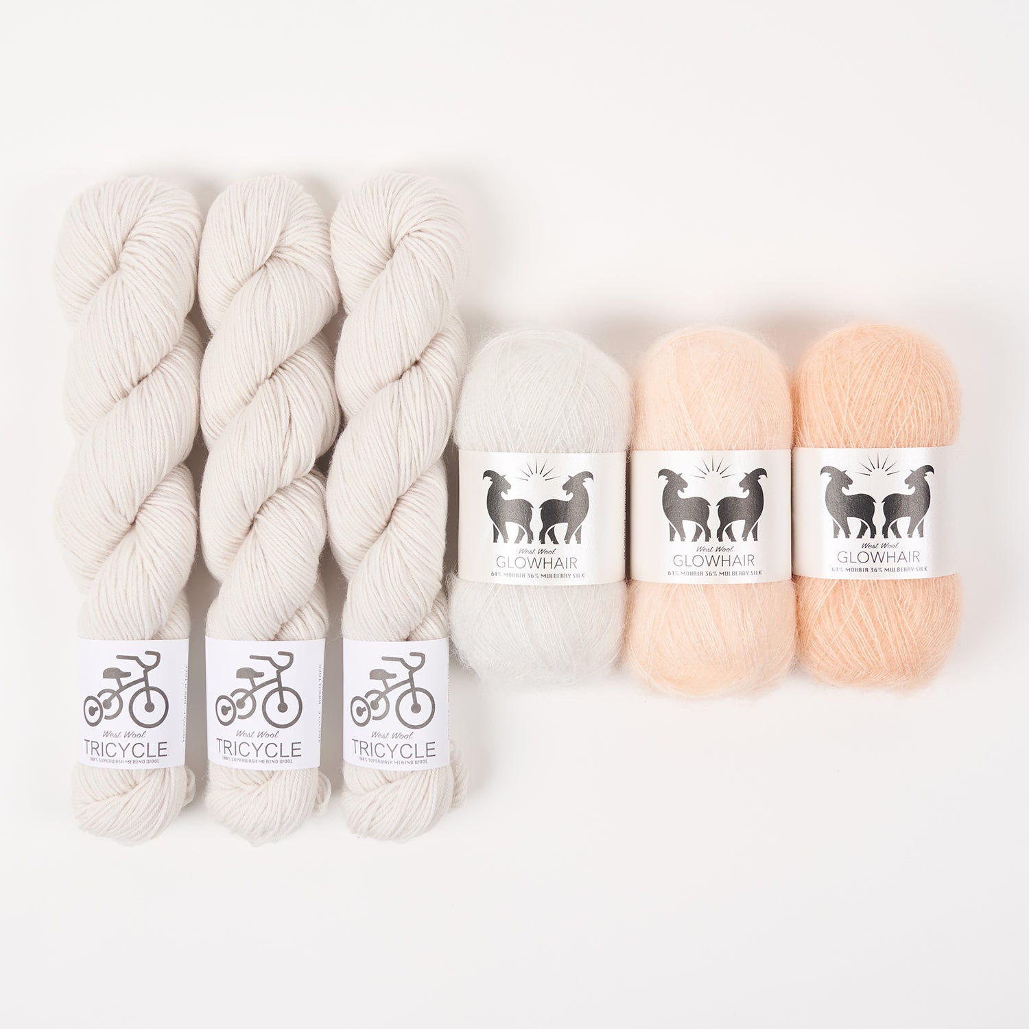This stunning kit from West Wool contains three skeins of fingering weight yarn in a single colour and three balls of mohair in three contrasting colours. If you need inspiration, it can be used to knit the gorgeous Glowhair Frost Cowl from Westknits.