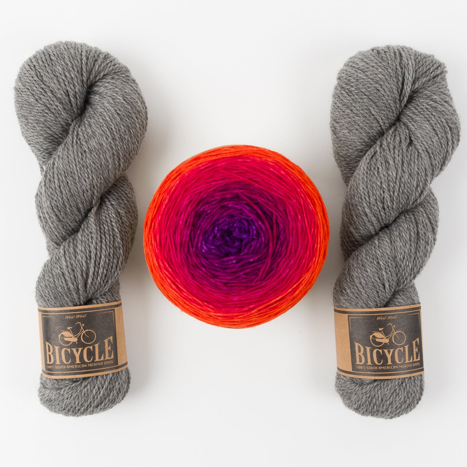 This beautiful four skein kit uses a solid yarn fromWest Wool together with a beautiful gradient fromBilum and is selected especially for patterns designed for this combination!