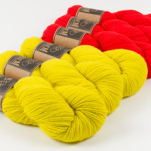 Yarn that is dyed in batches may have some variation in colour between skeins taken from different lots. We take great care in photographing our kits and yarns accurately, however colours may vary slightly from the pictures.